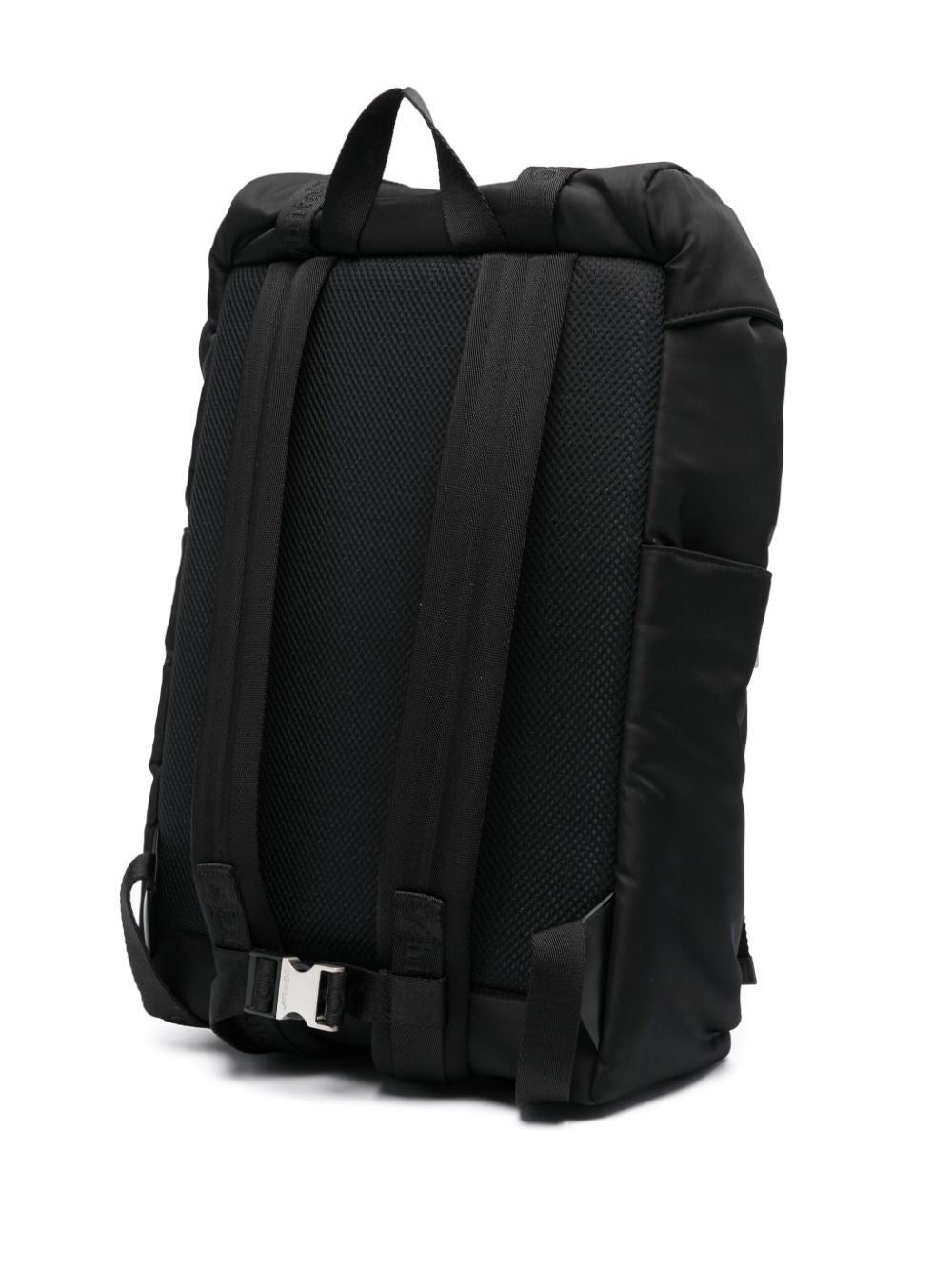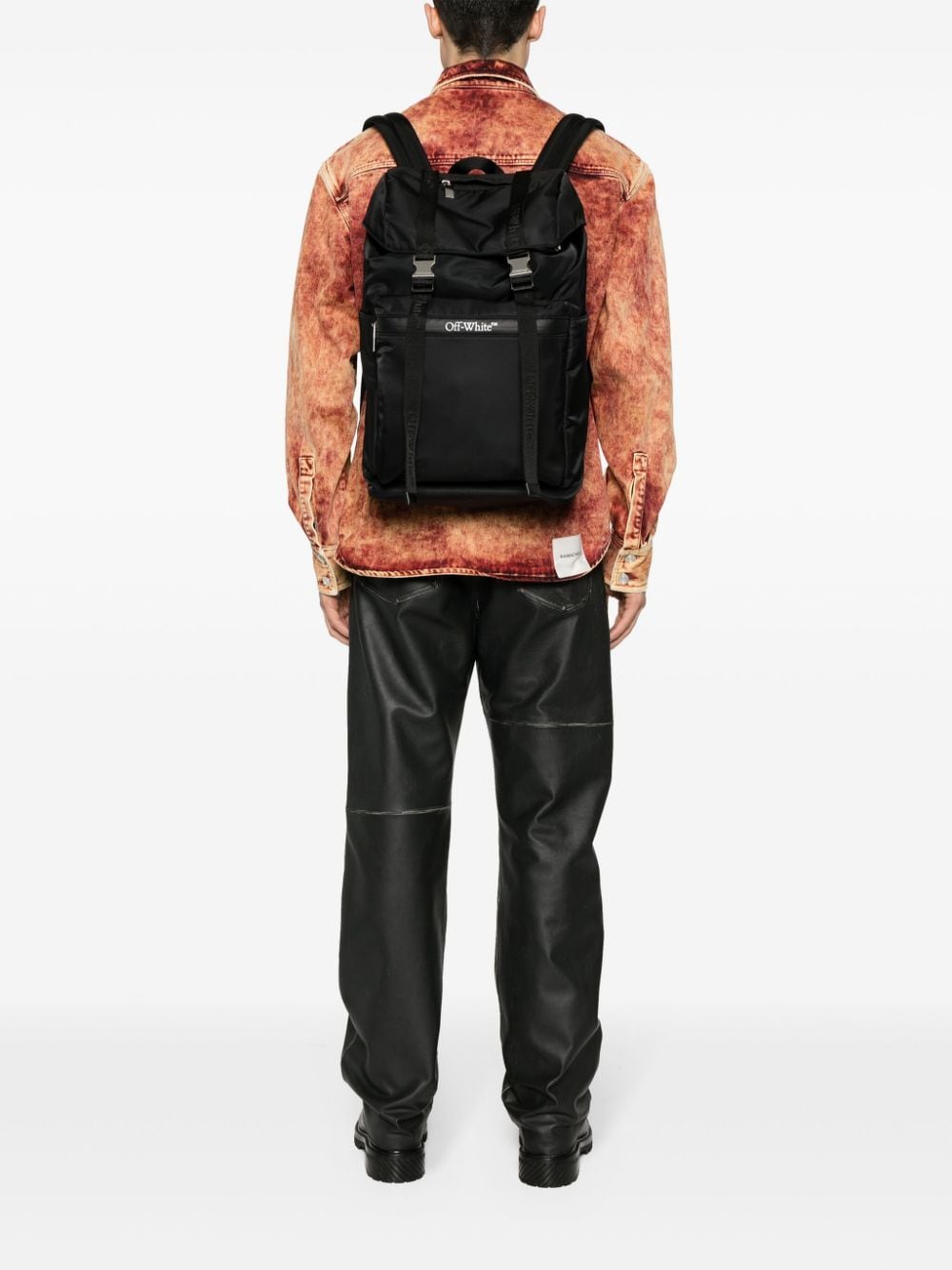 Off-White’s black Outdoor backpack takes its name and inspirations from hiking styles. It’s made from water-resistant shell with a drawstring top and buckled front flap then branded with Bookish logos along the jacquard straps and taped zip pocket. Padded mesh panelling at the back ensures breathable comfort while an internal laptop pocket keeps valuables protected.