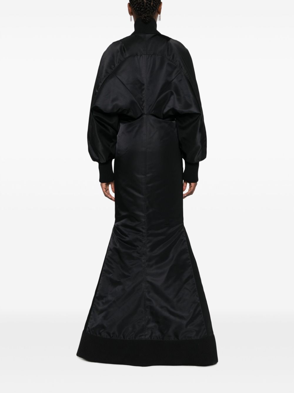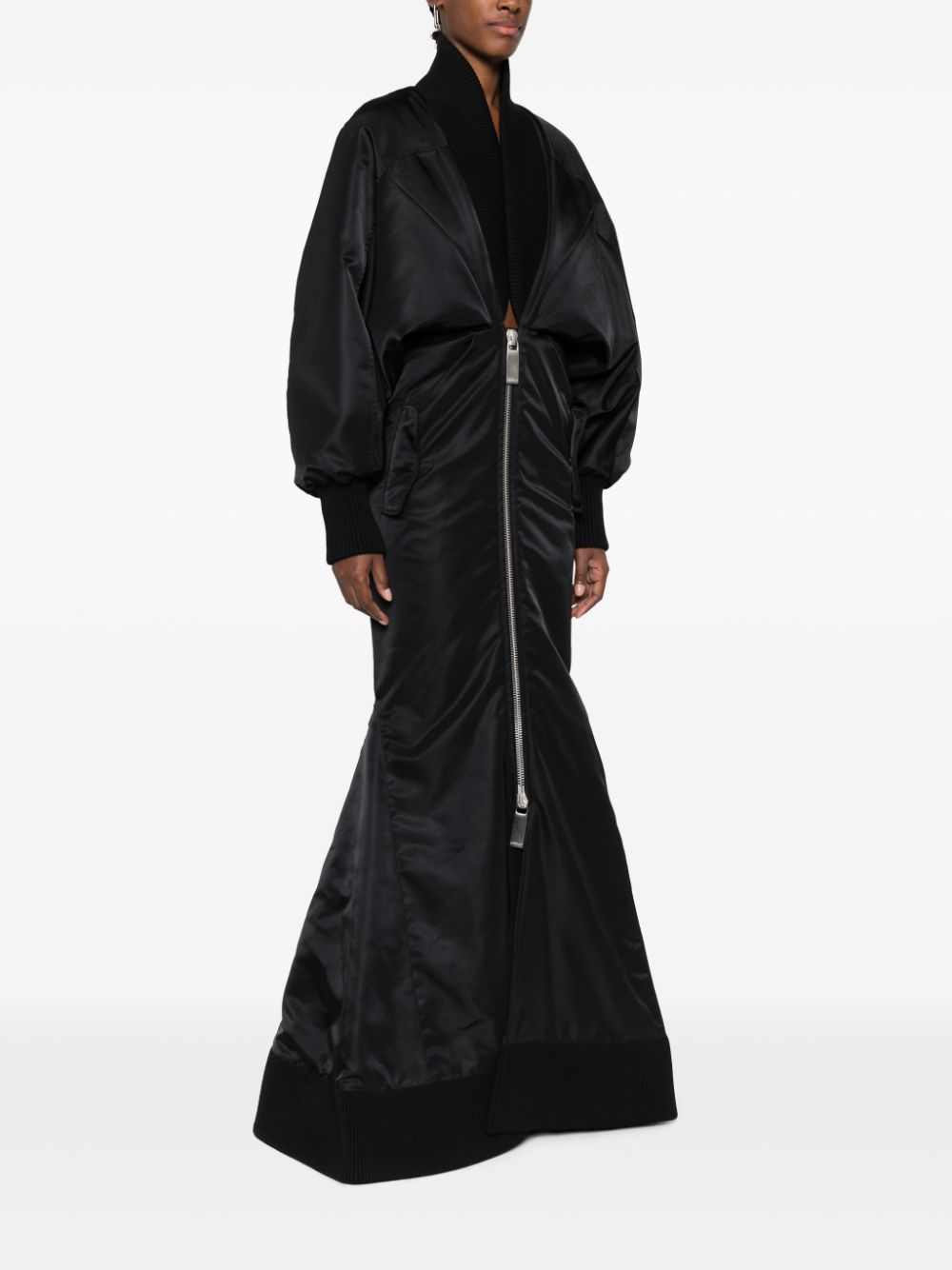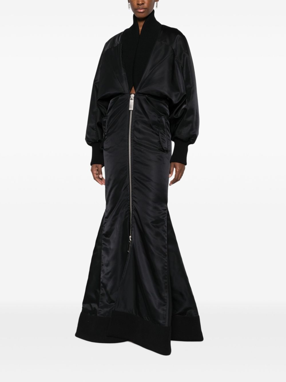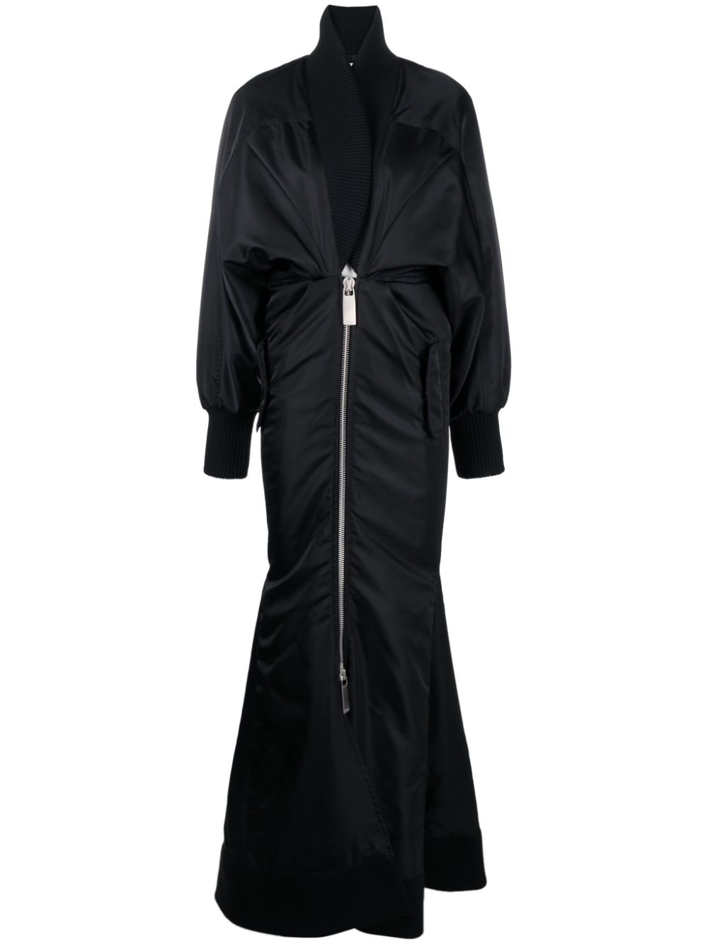 Off-White puts a streetwear spin on the mermaid gown silhouette in this all-black iteration. Trimmed with a ribbed collar and cuffs, the padded construction and zip fastening incorporate elements from a contemporary bomber jacket design.