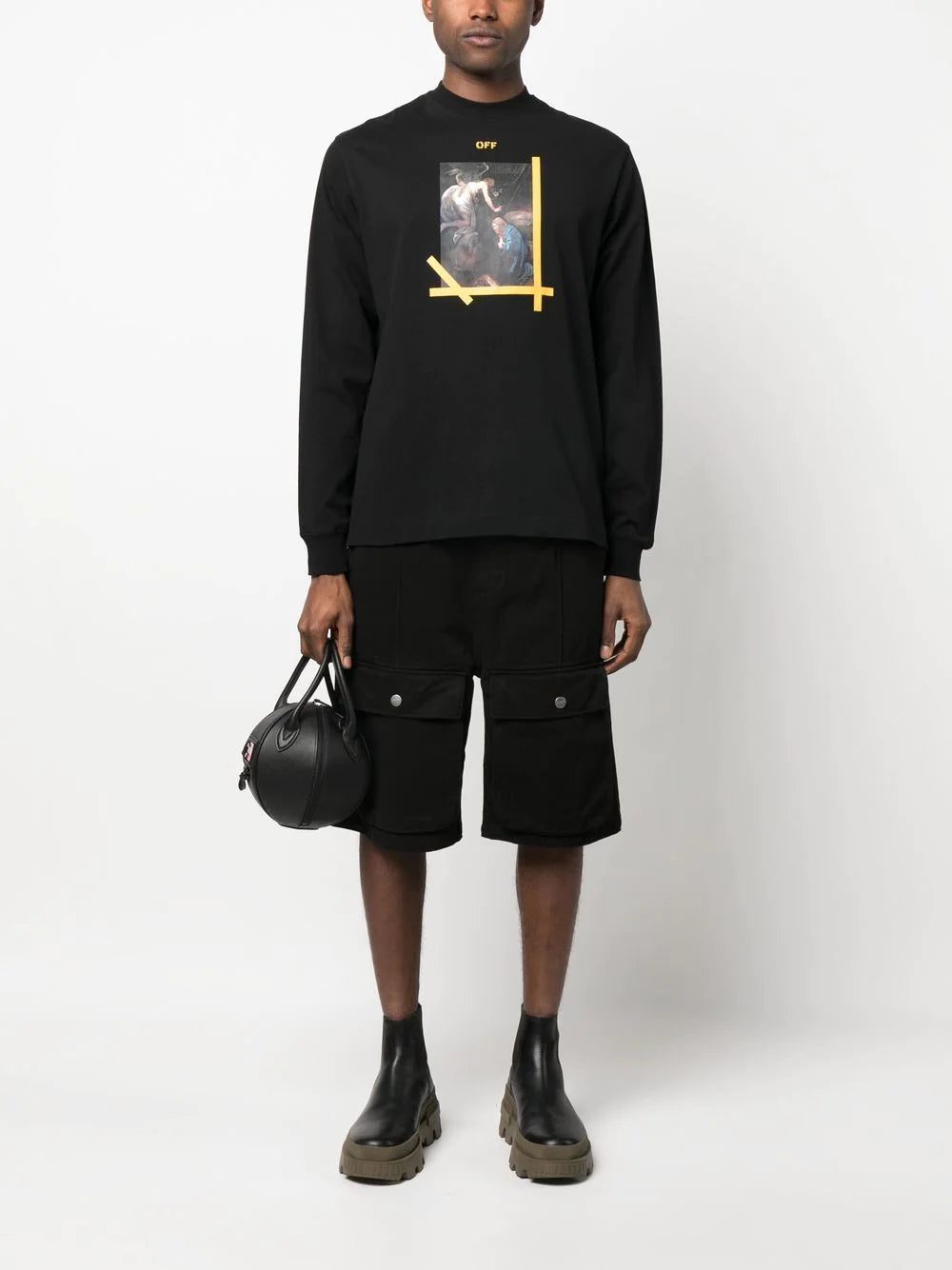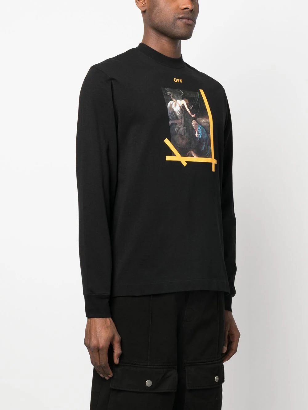 Off-White's bold aesthetic is showcased with this long-sleeved T-shirt, adorned with a painting print to the front and a subtle logo touch.