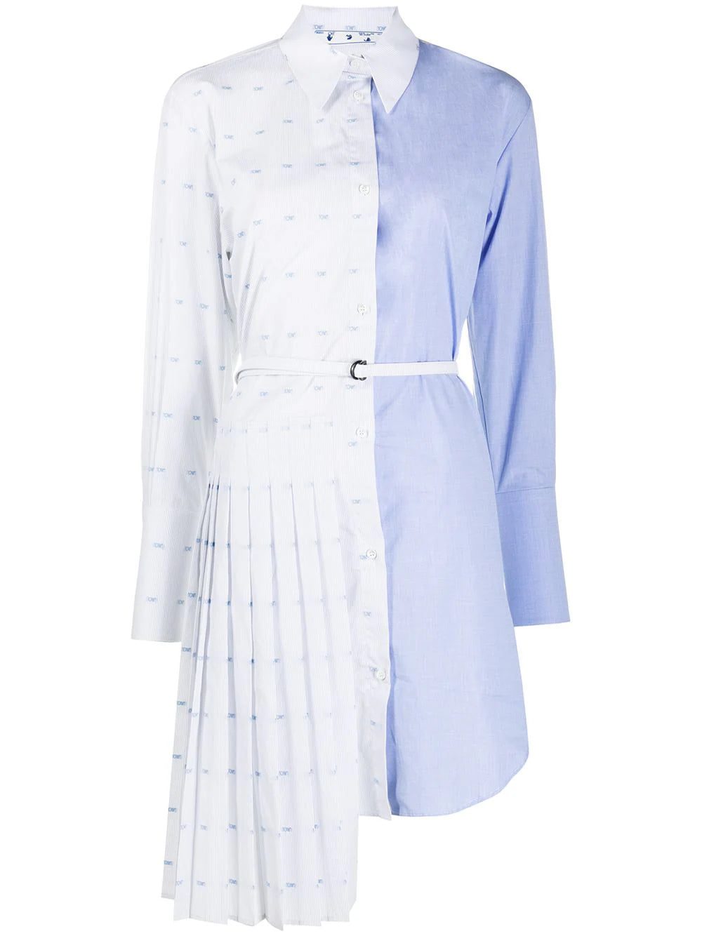 Monday is nothing a nice look can't fix. Detailed with a pleated panel to the side, this asymmetric shirt dress from Off-White is the only kind of blues you need in your life. Guess who's going to work in a great mood and an even better outfit...
