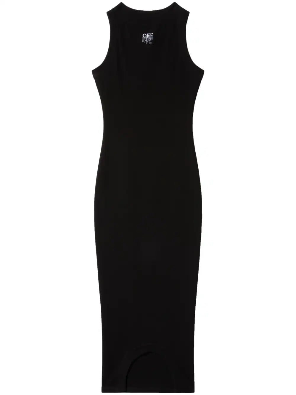 ribbed sleeveless dress from OFF-WHITE featuring black, stretch-cotton, fine ribbed, logo print to the front, round neck, sleeveless and straight hem.