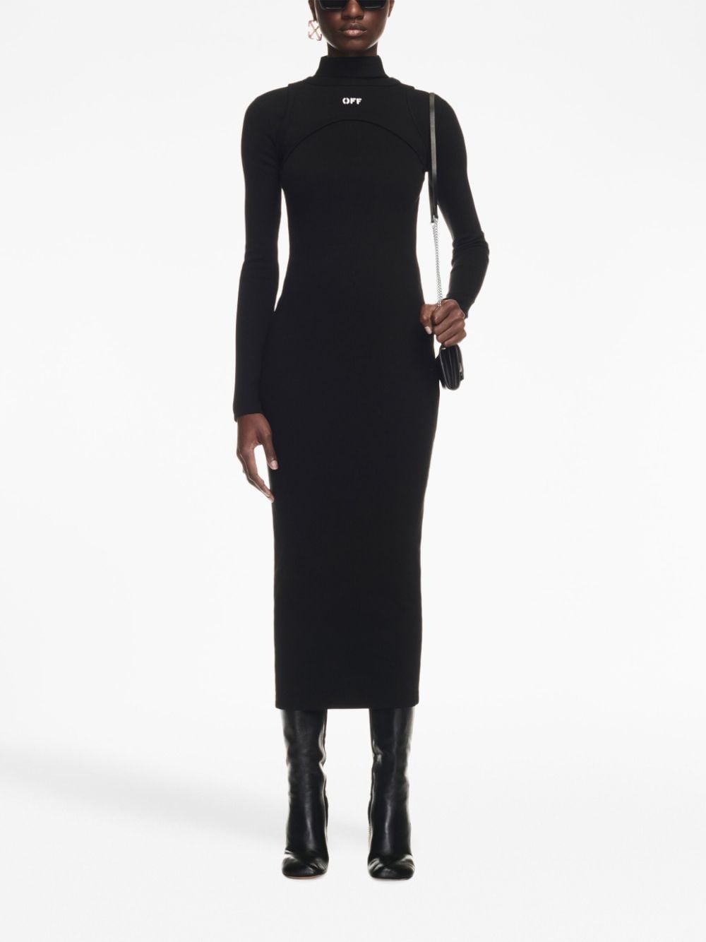 Off-White matches its bold experimental style with a minimalist aesthetic in this midi dress. Boasting a stretch cotton ribbed construction, this long-sleeve silhouette is enhanced with a second top – a sculptural tonal layer with an embroidered logo.