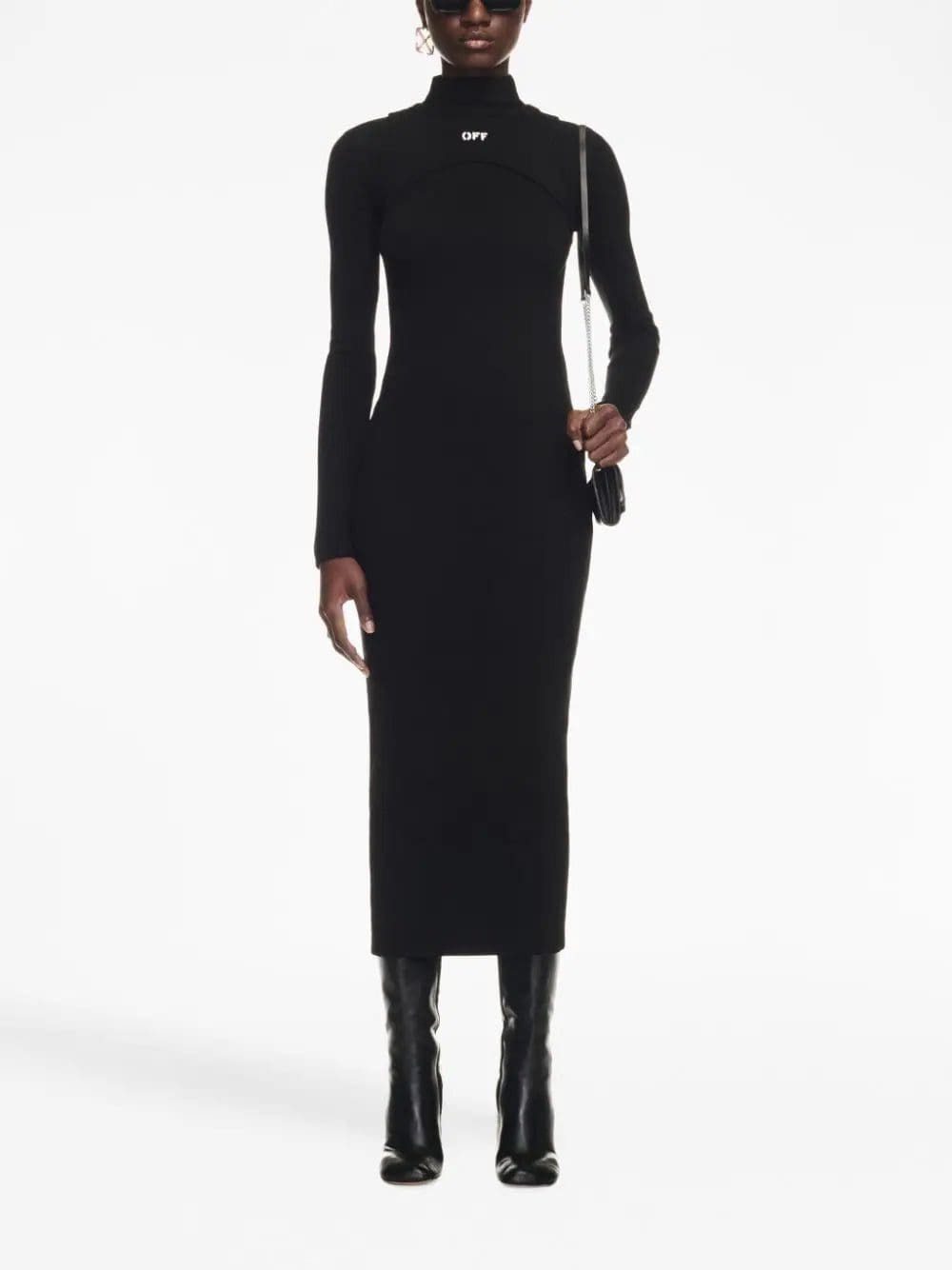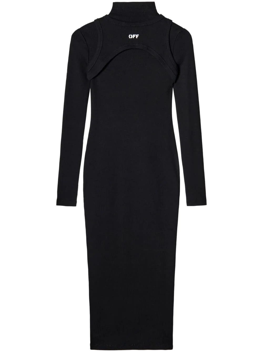 Off-White matches its bold experimental style with a minimalist aesthetic in this midi dress. Boasting a stretch cotton ribbed construction, this long-sleeve silhouette is enhanced with a second top – a sculptural tonal layer with an embroidered logo.