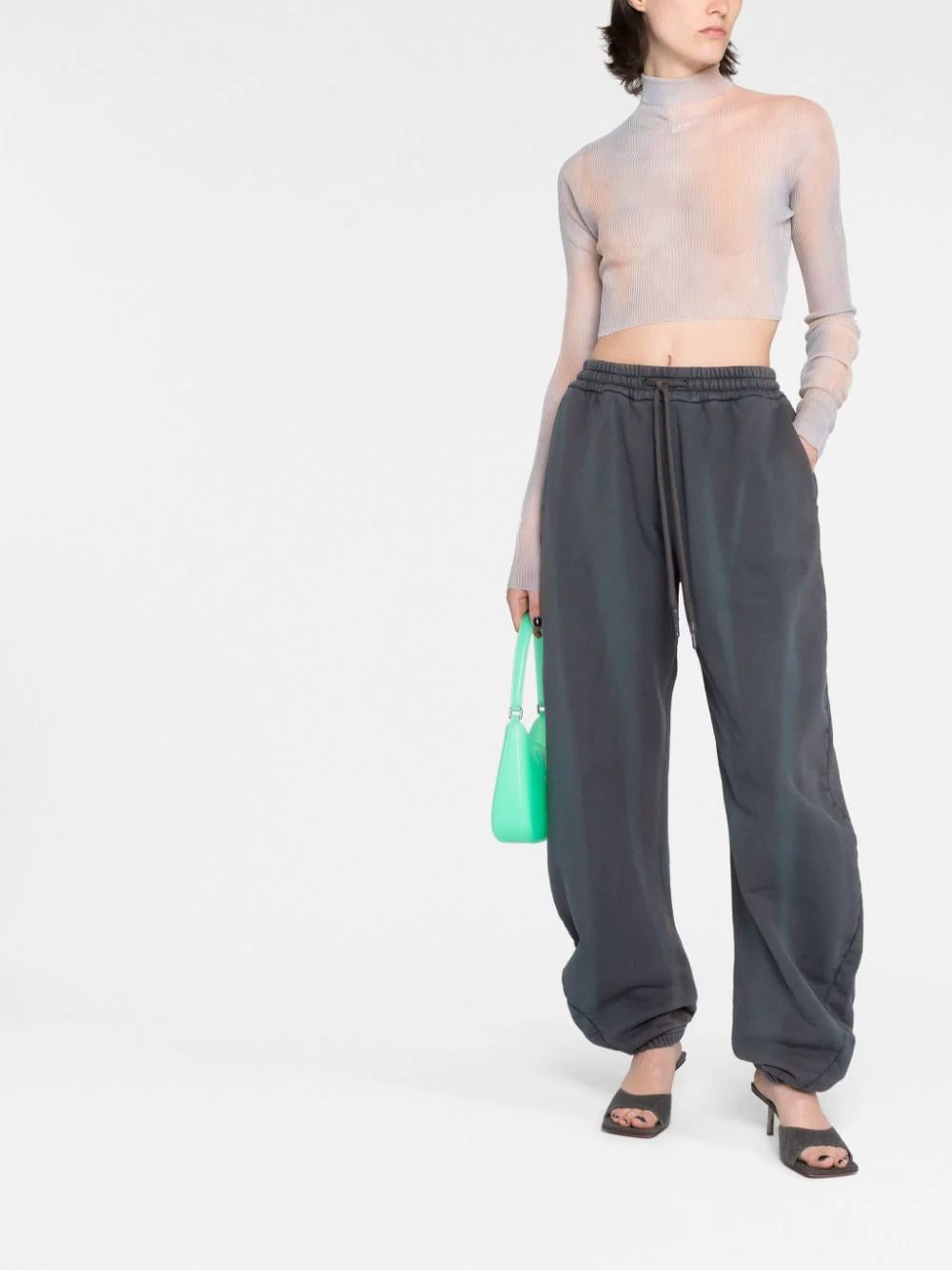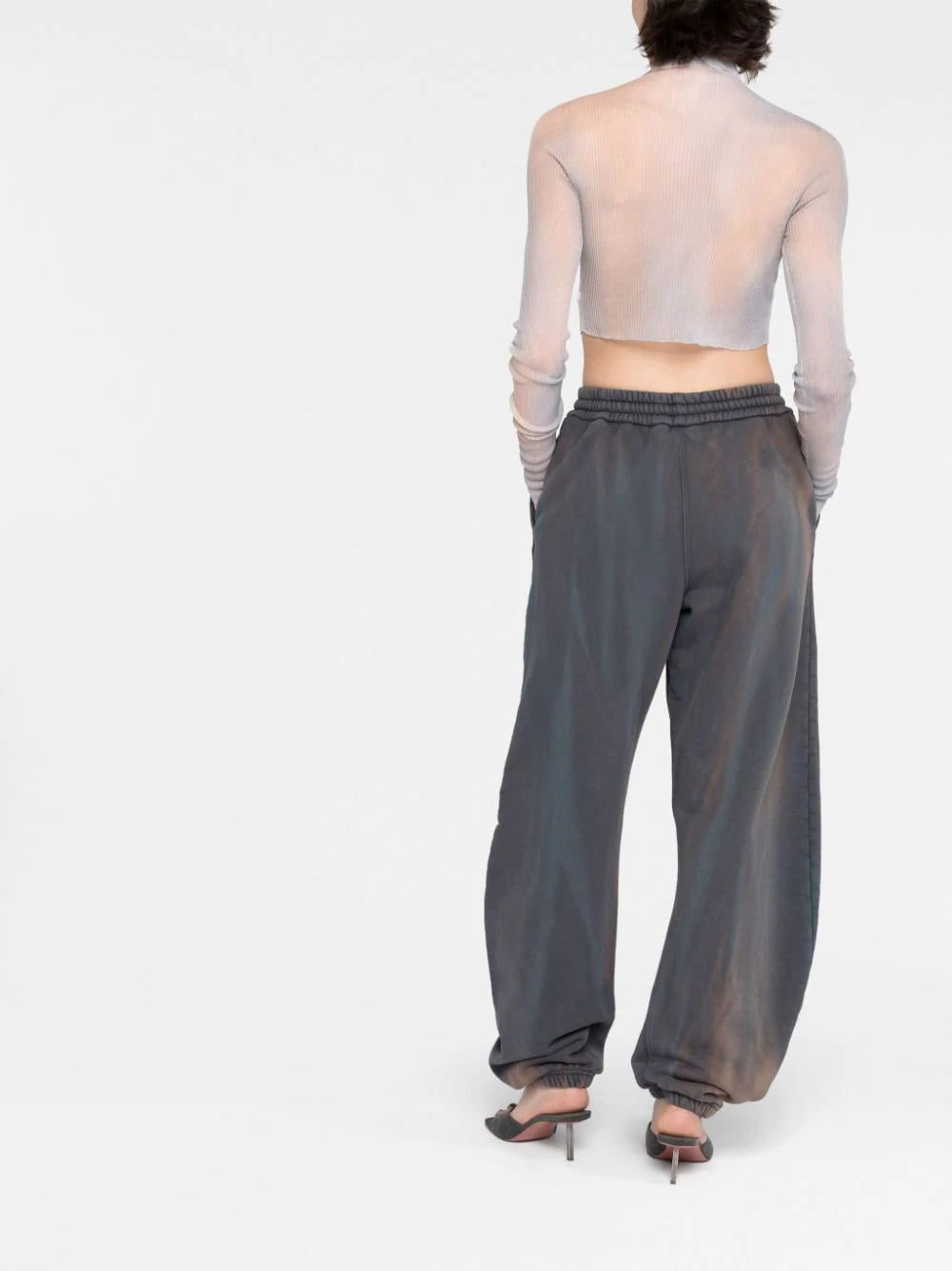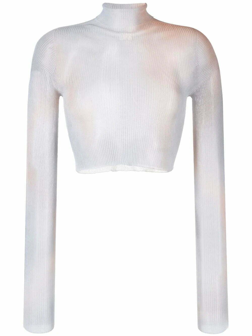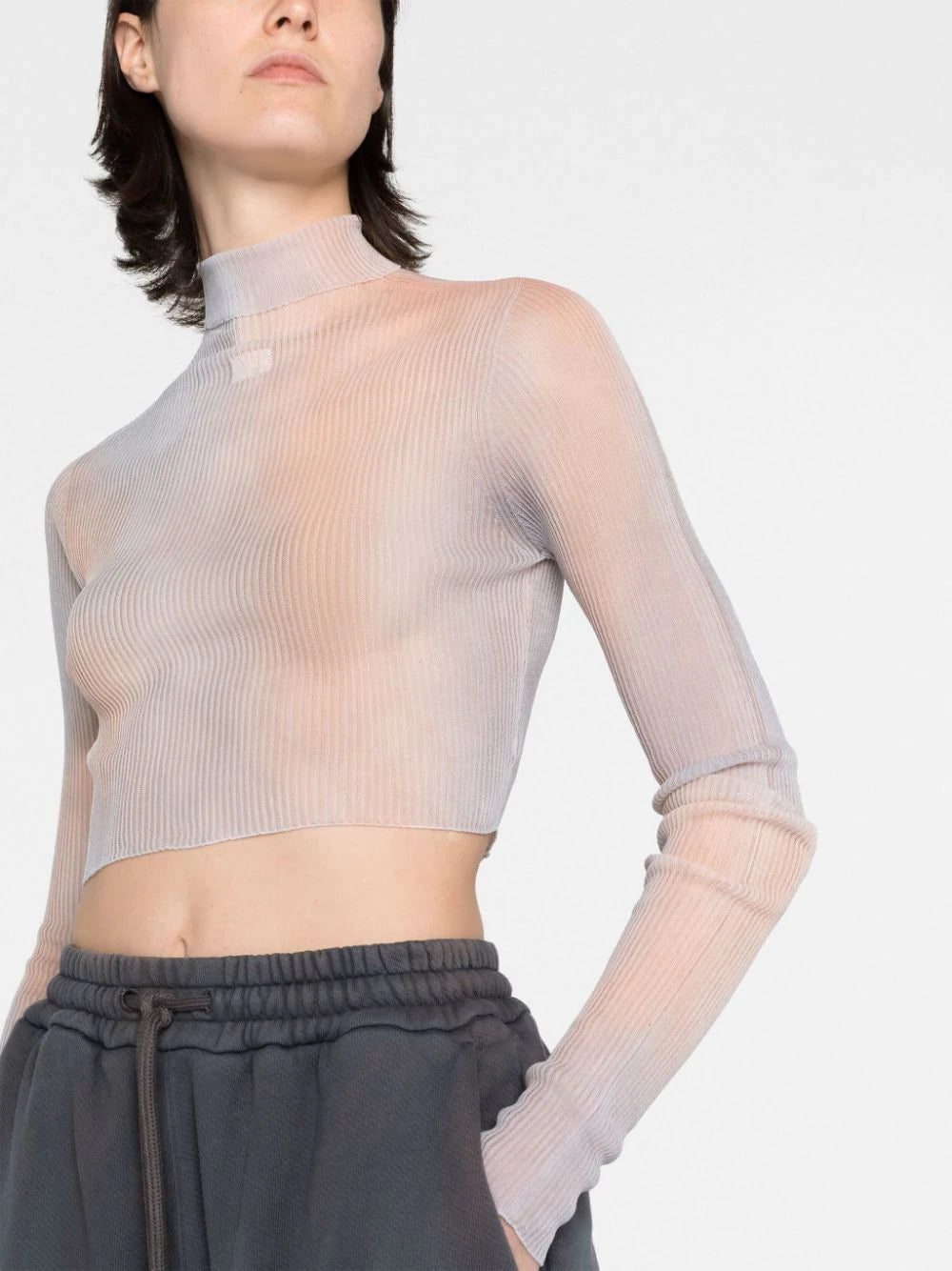 Off-White's streetwear-inspired aesthetic is evident in this ribbed-knit top. Covered in a neutral tie-dye pattern, it is defined by its extremely cropped silhouette.