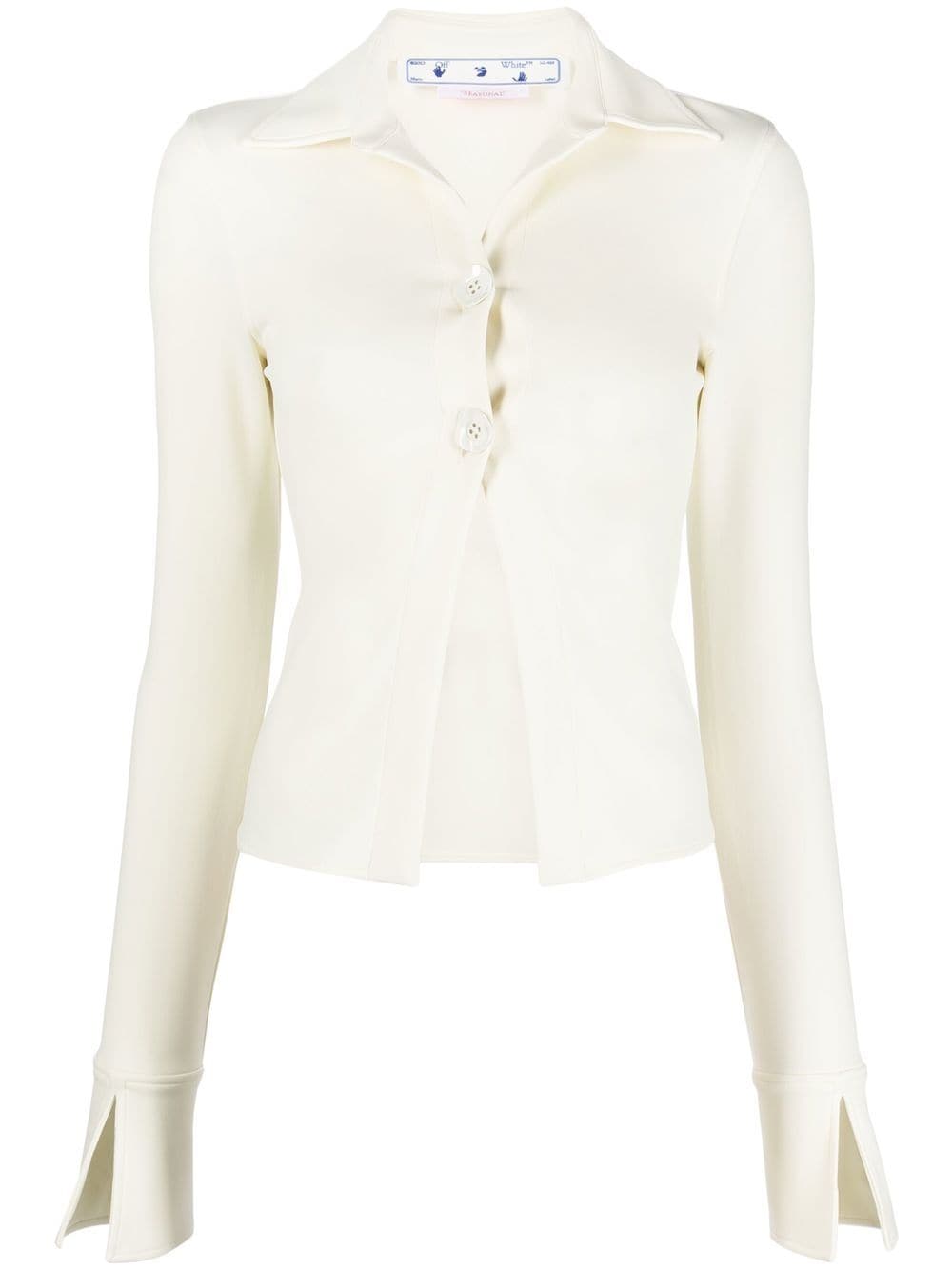 Off-White's Sleek collection comprises understated pieces defined by their elegant and versatile silhouettes. Presented in white, this shirt has a slim-fitting silhouette that cinches slightly at the waist, and its sleeves are finished with a split cuff - the collection's signature detail.