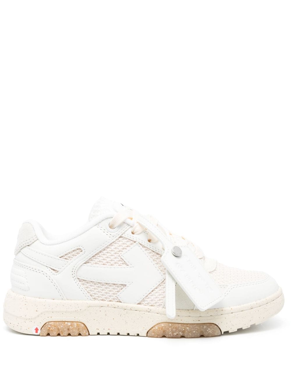 These Slim Out Of Office sneakers by Off-White come with a cream-white mesh construction panelled with leather elements that add a different texture to the pair. Boasting the arrow motif and the signature Zip Tie tag, these are unmistakably an Off-White creation.