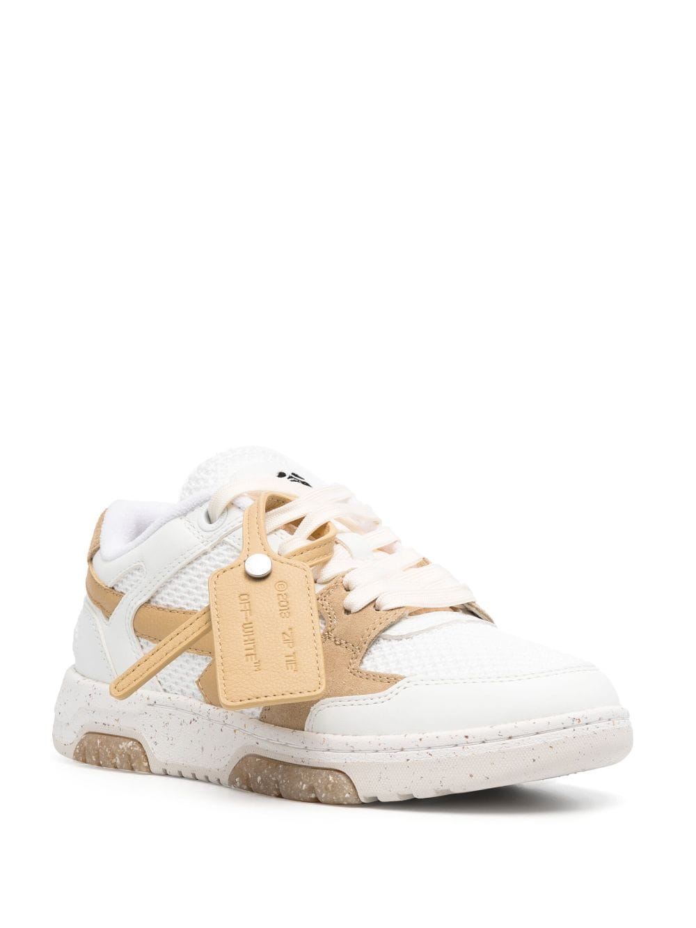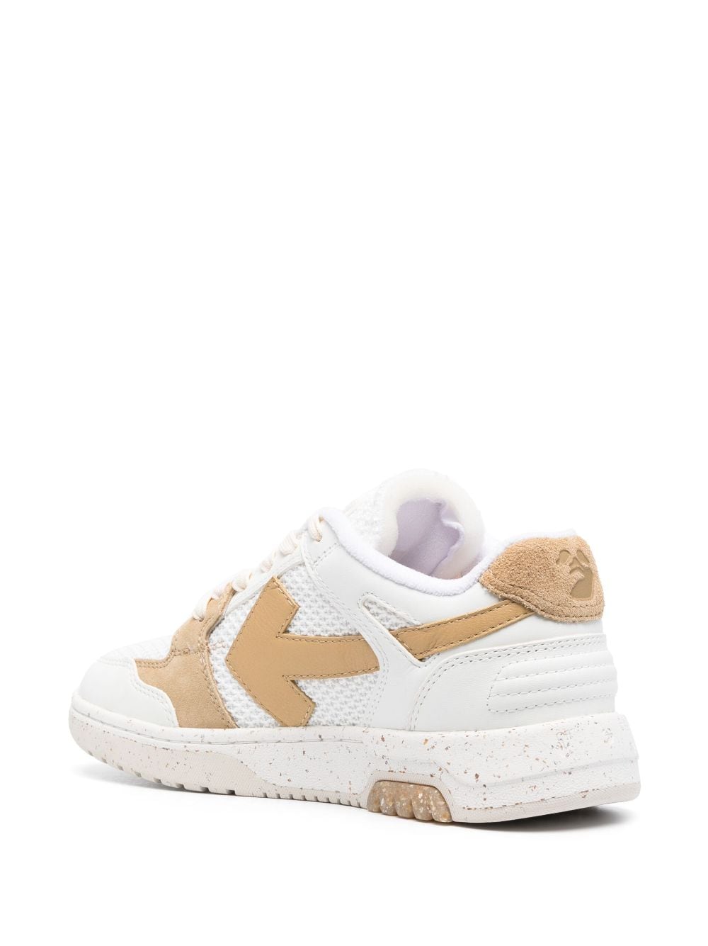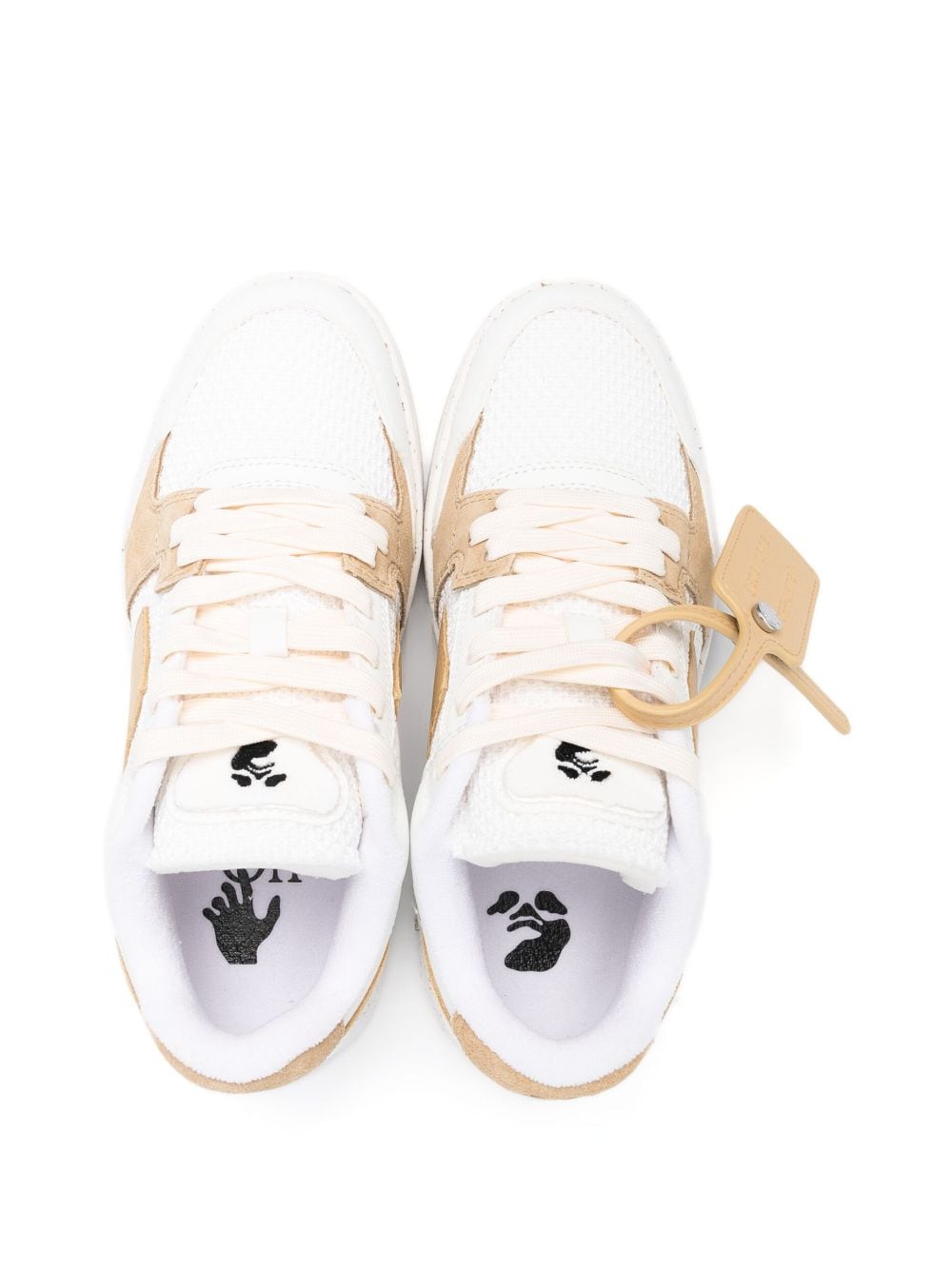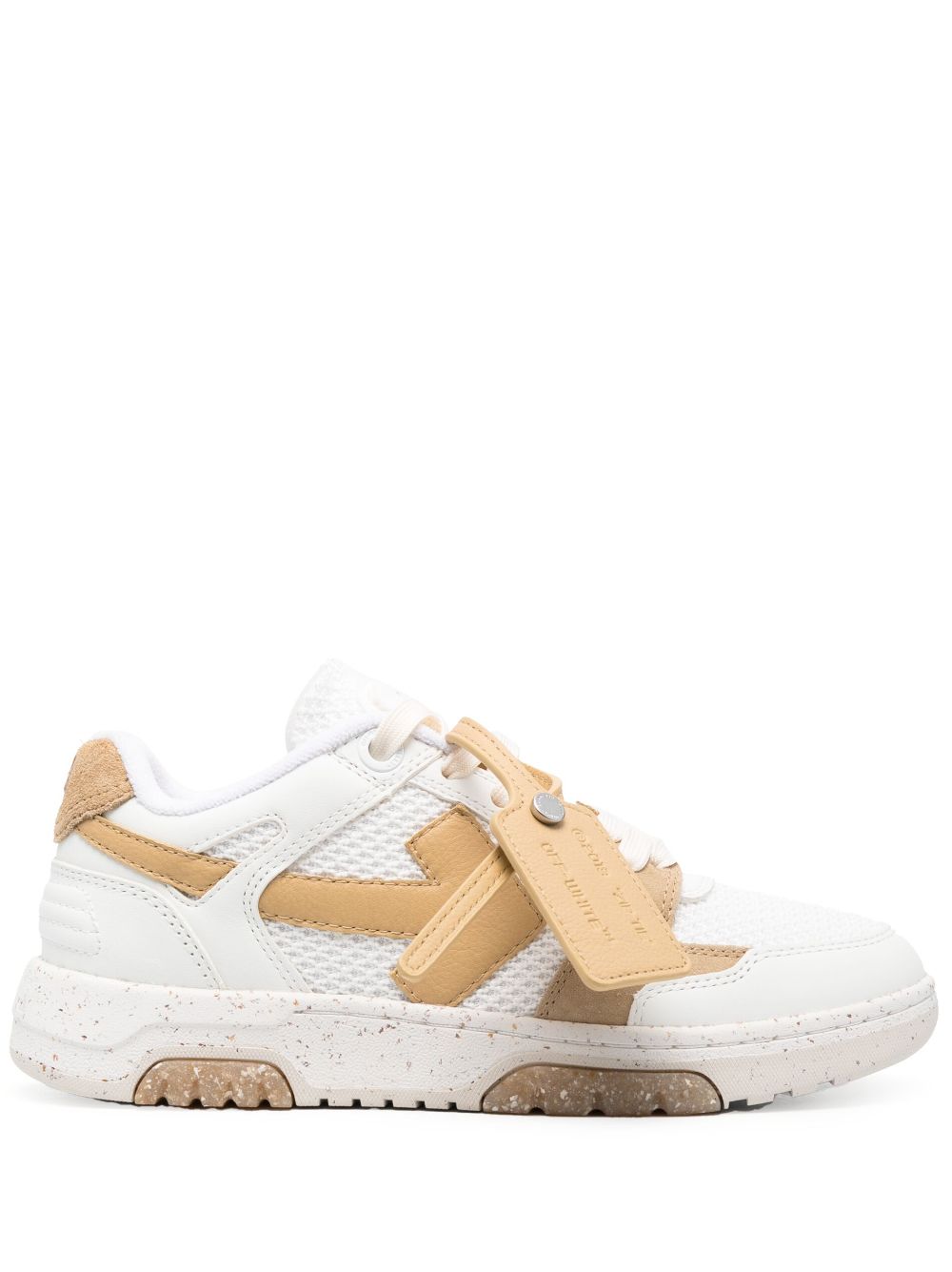 These Slim Out Of Office sneakers by Off-White come with a yellow and white mesh construction panelled with leather elements that add a different texture to the pair. Boasting the arrow motif and the signature Zip Tie tag, these are unmistakably an Off-White creation.