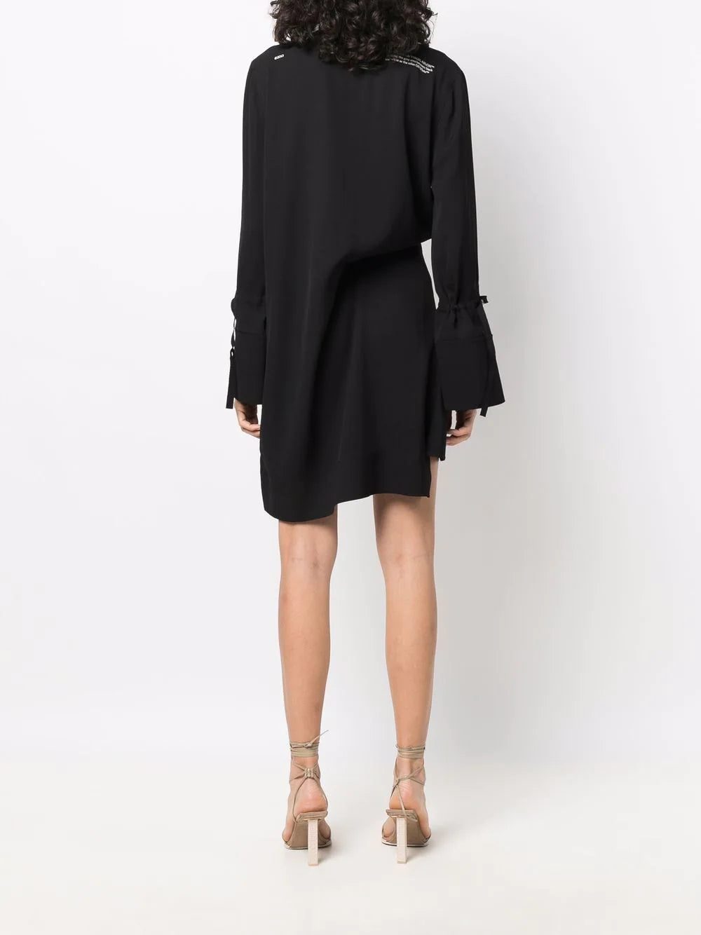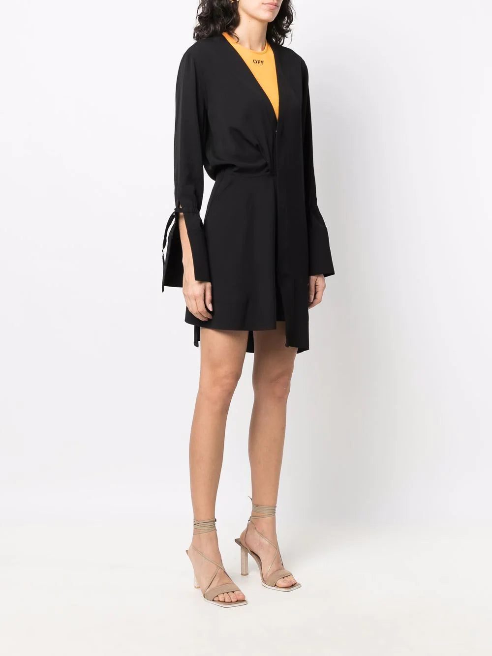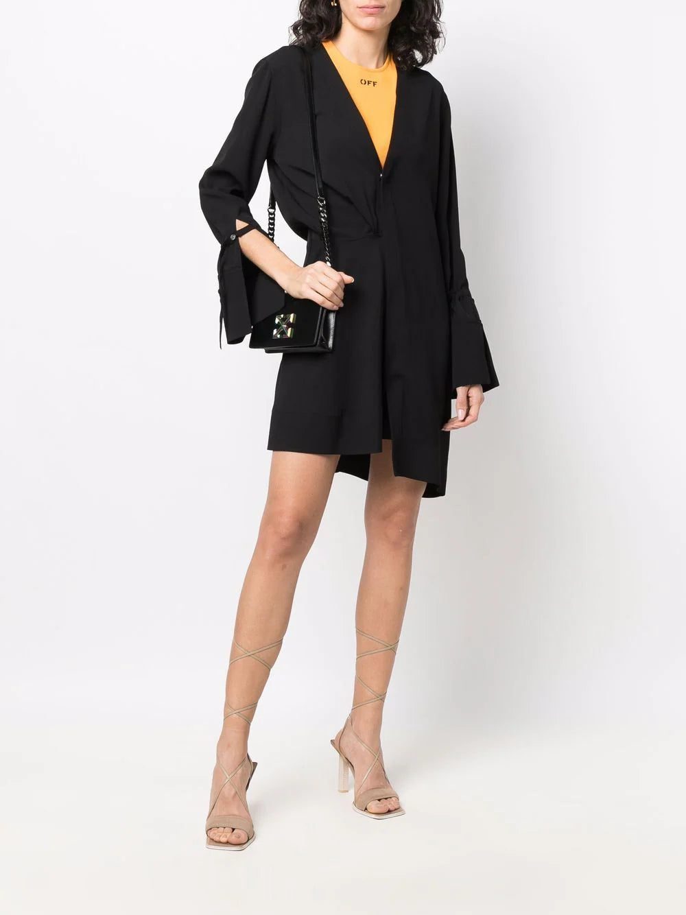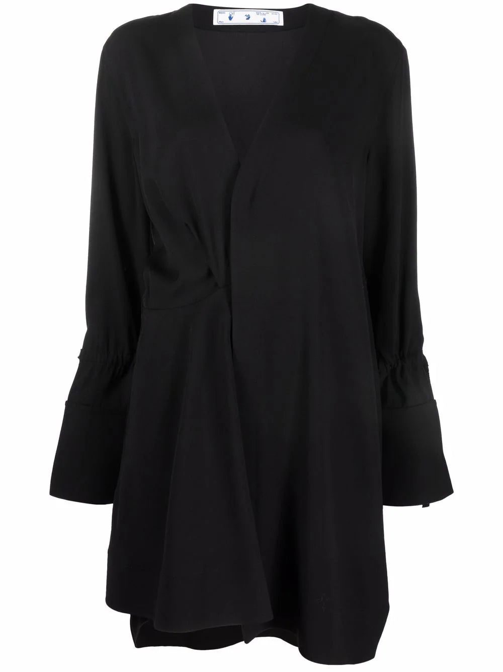 Crafted from a wool blend with a draped design, this black minidress from Off-White is simply punctuated with the brand's logo and slogan print to the rear.