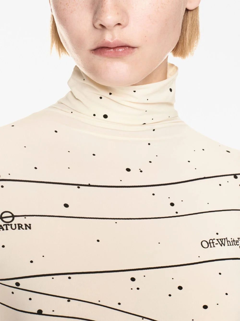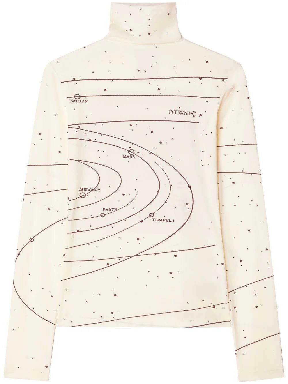Solar influences permeate Off-White's AW23 collection, as is evidenced by this roll neck top. Crafted with plenty of stretch for a second skin feel, it depicts the solar system across the front and back.