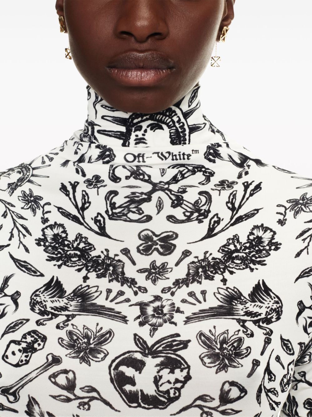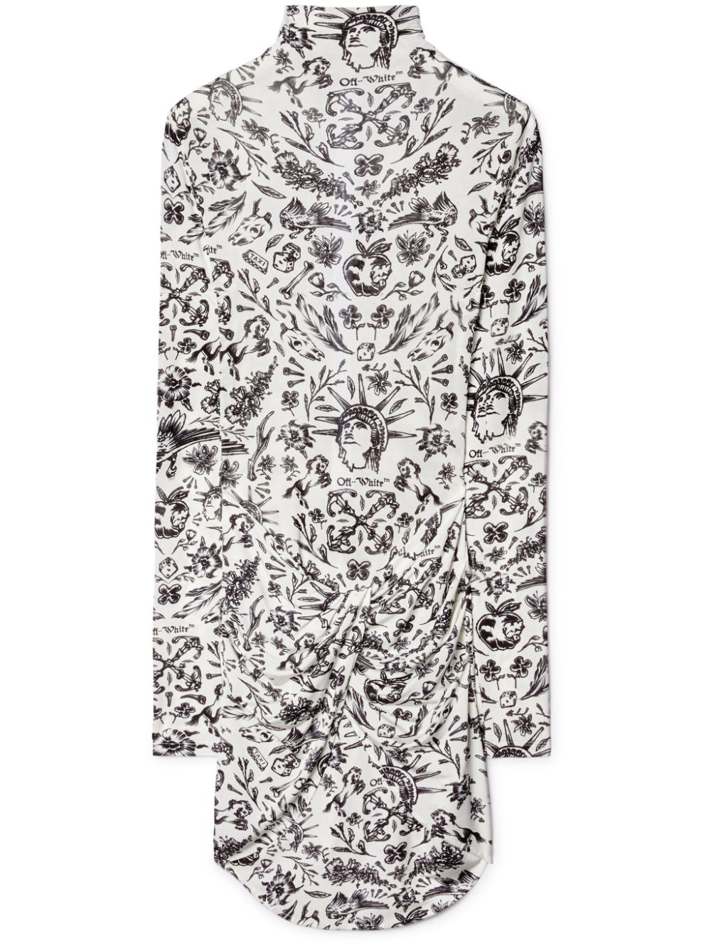 Interrupted by a twisted detail at the front that lends dimension to its fitted silhouette, this white dress from Off-White boasts a seasonal Tattoo print throughout – a nod to the brand's penchant for craftsmanship and design.