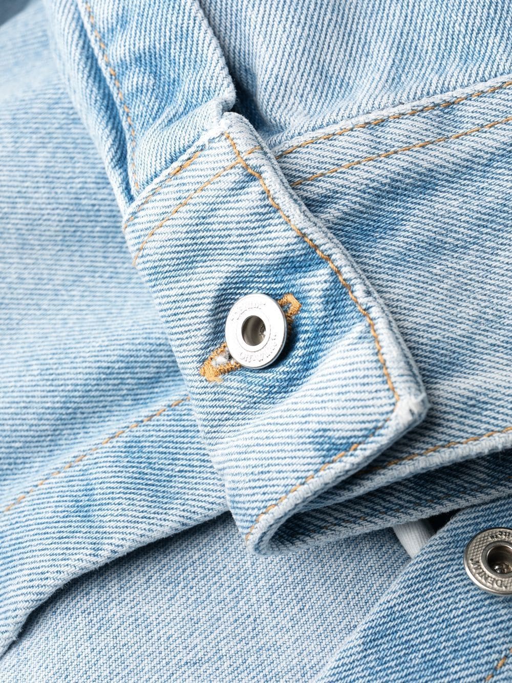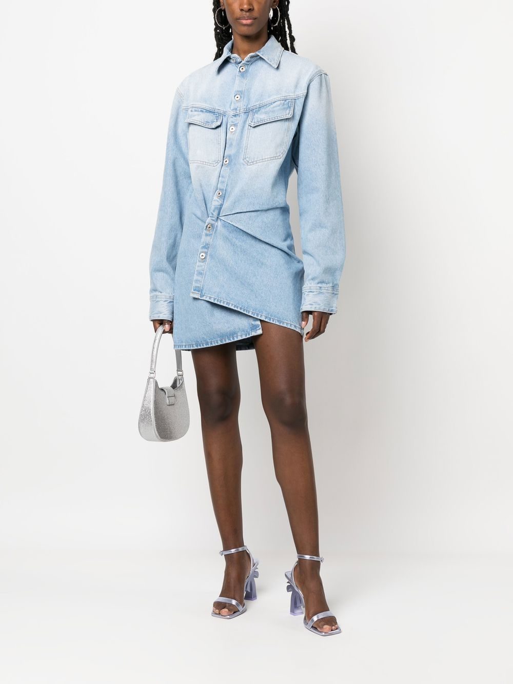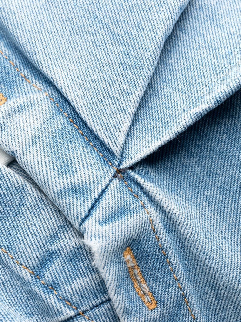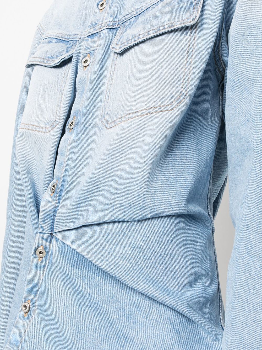 light blue cotton denim light wash asymmetric design long sleeves front button fastening classic collar