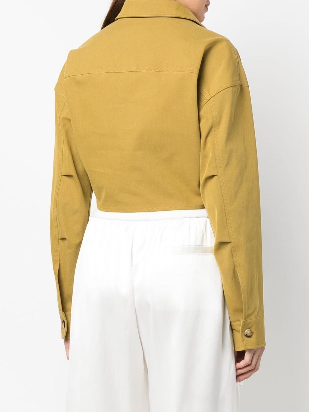 moss green organic cotton blend twist detailing classic collar two chest patch pockets drop shoulder long sleeves buttoned cuffs cropped Conscious: This item is made from at least 50% organic materials