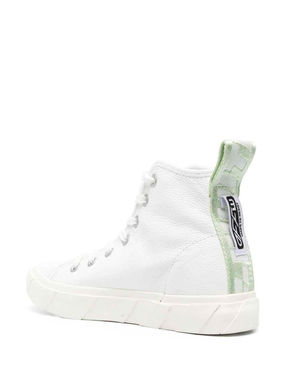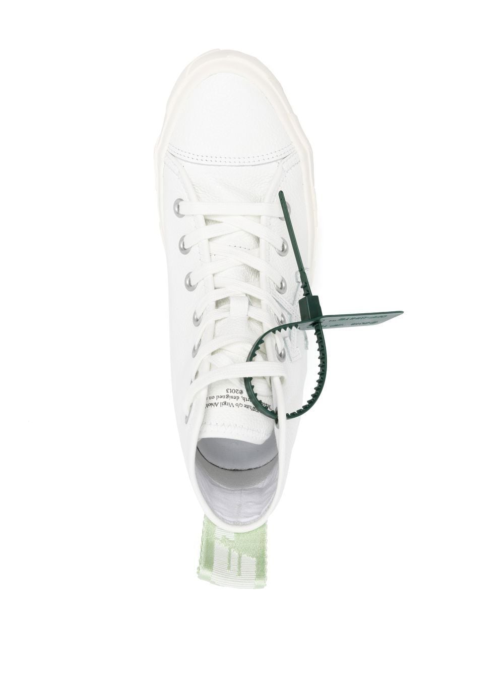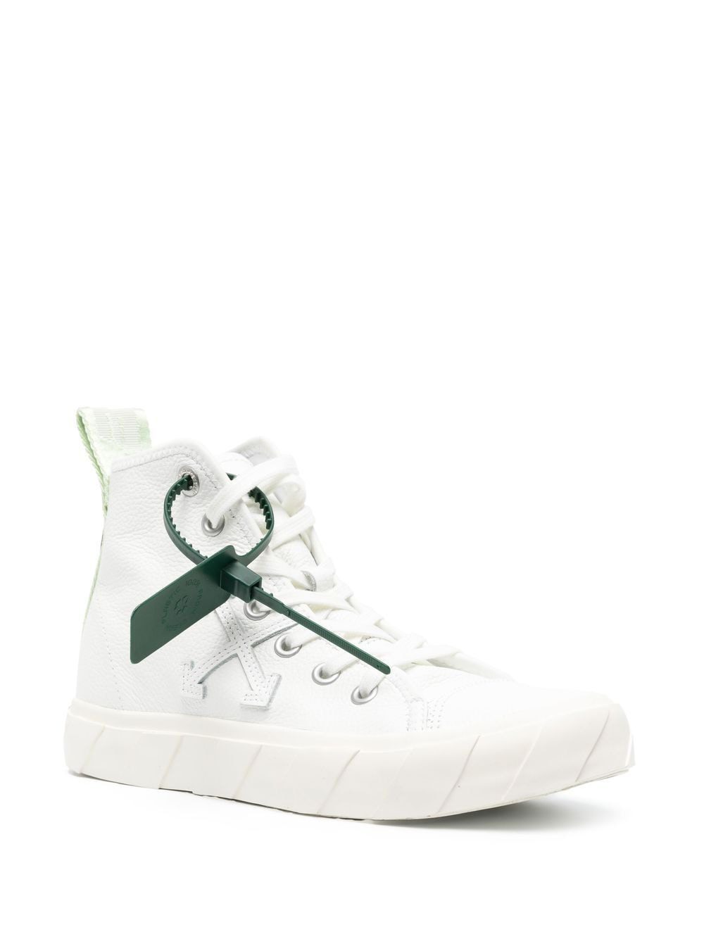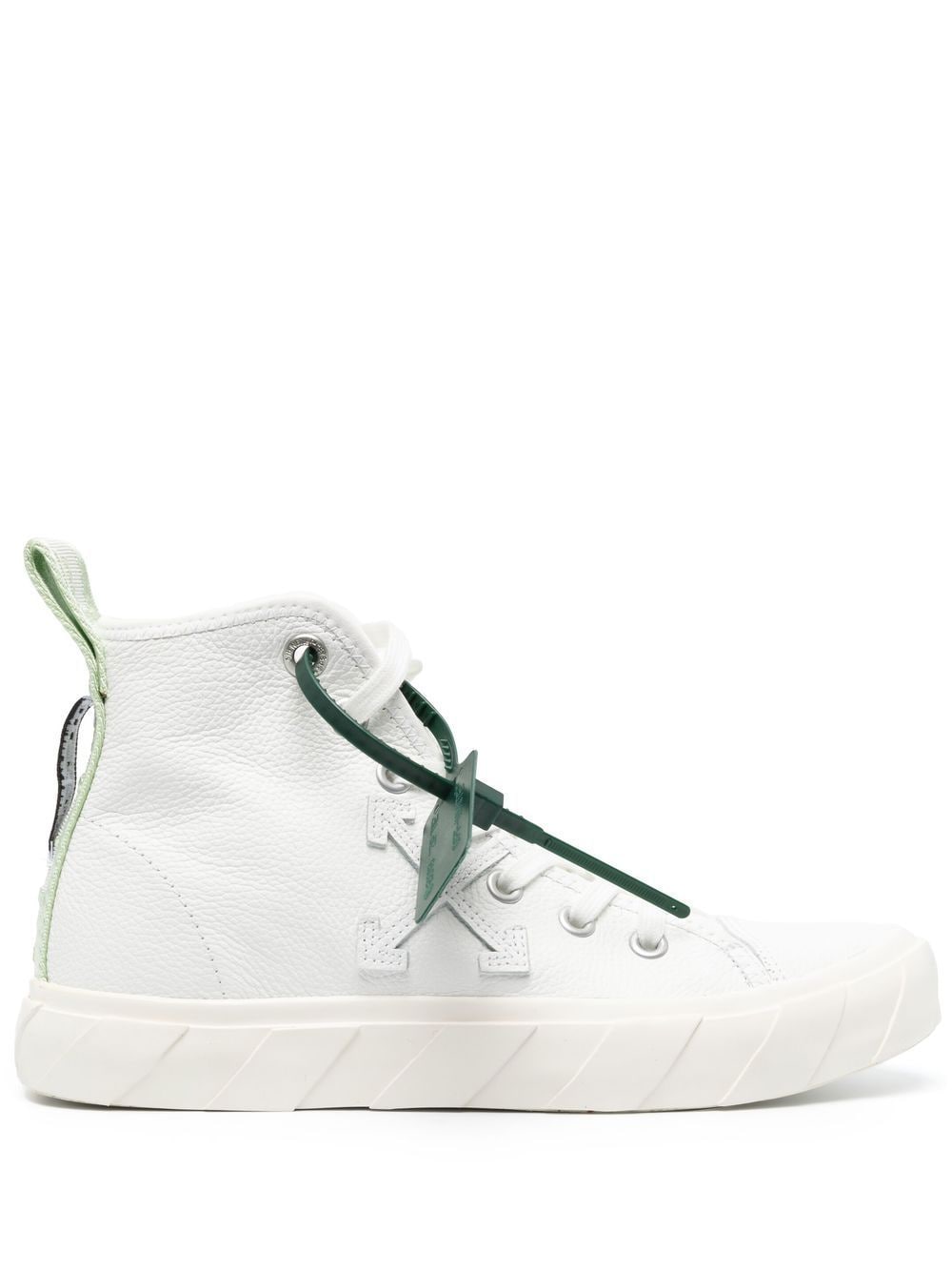 Off-White updates its Vulcanised sneakers in an understated white-hued construction. Set on the style's rubber soles patterned with diagonal stripes, they're finished with the signature Zip tie tag and tape trim for a pop of bright colour.