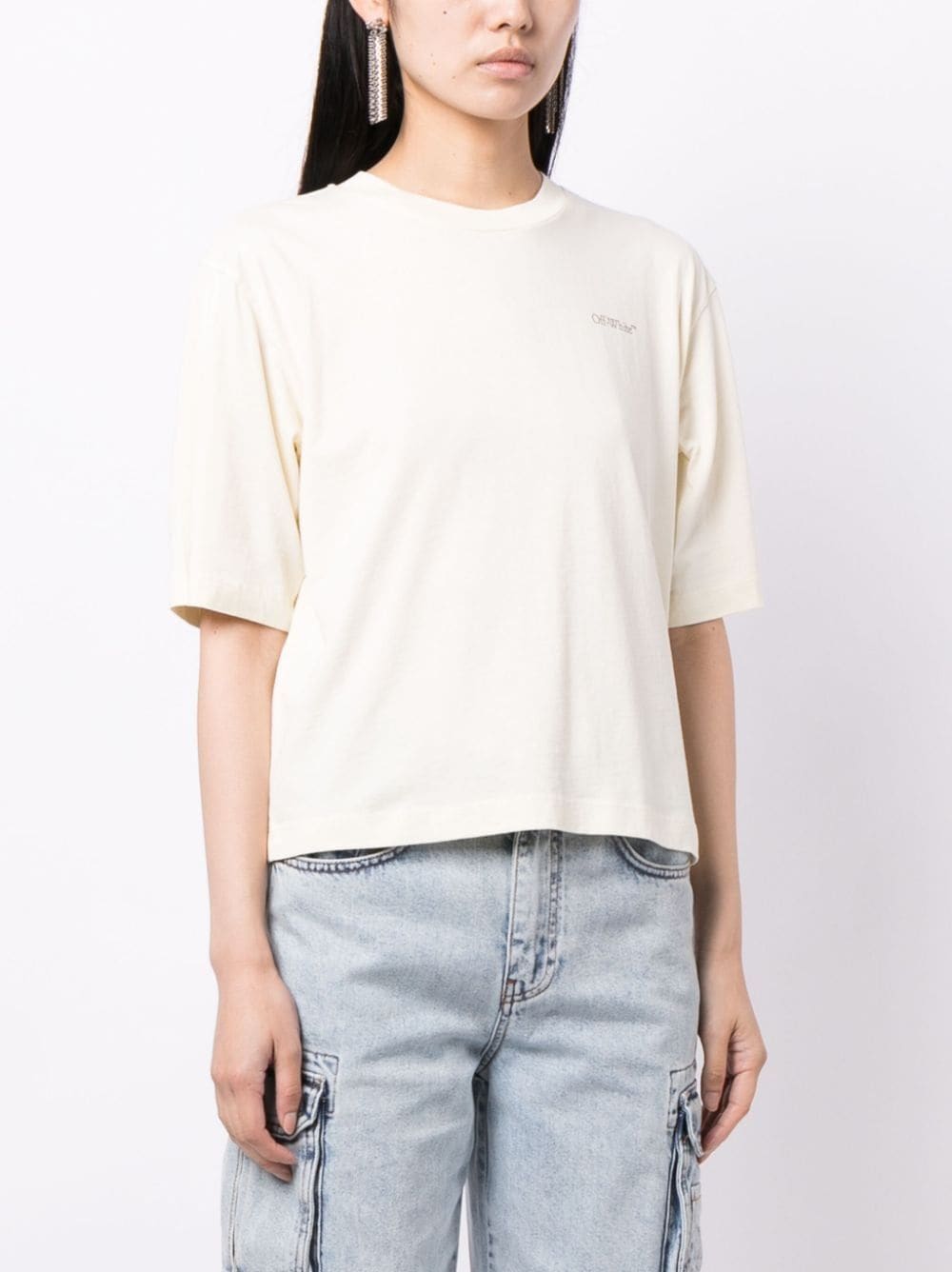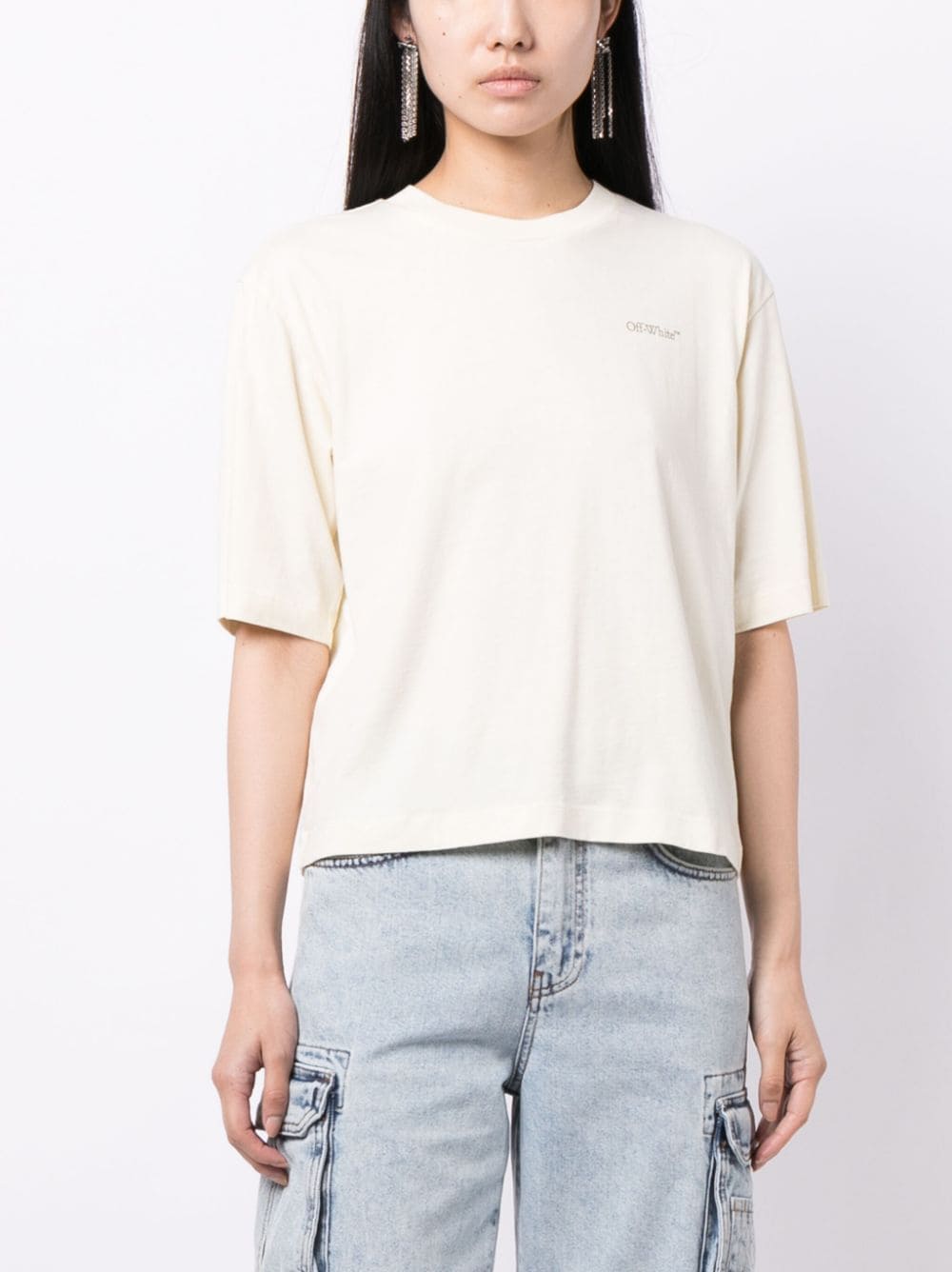 Crafted from Portuguese cotton, this Off-White T-shirt is decorated with a reinterpretation of the signature Arrow motif. Meanwhile, a small logo print adorns the chest.