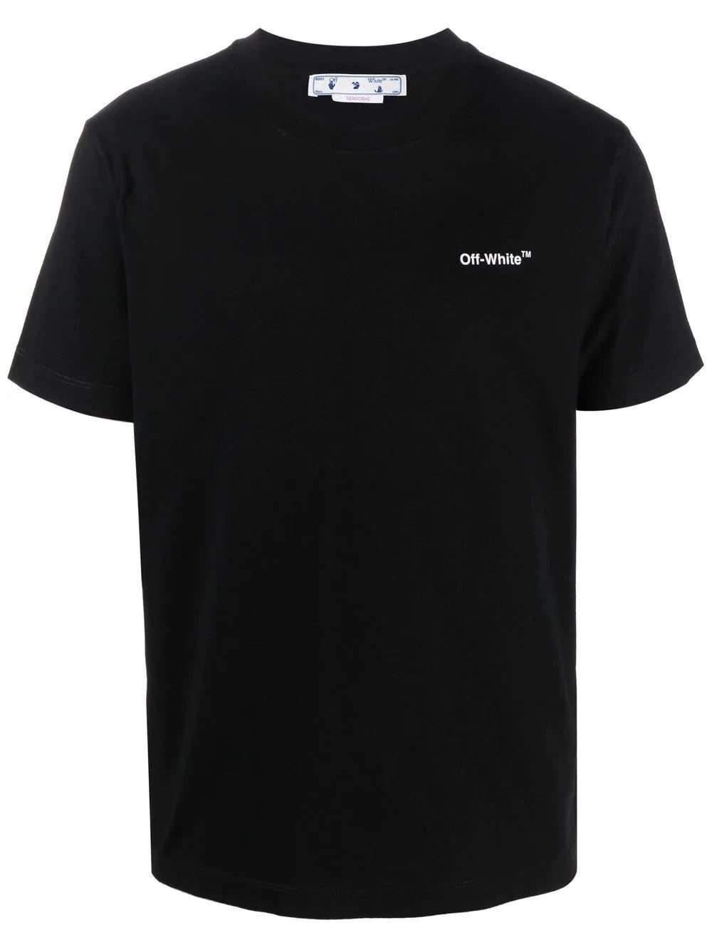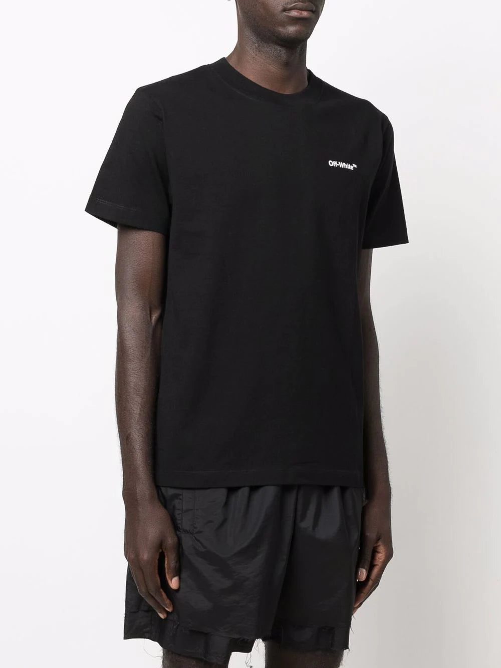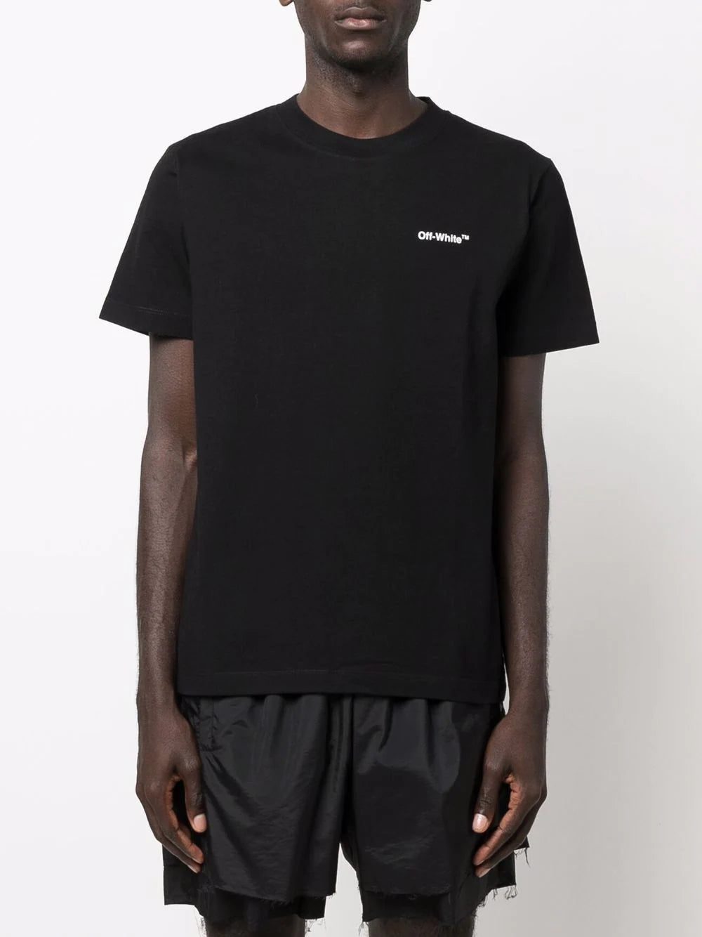 Known as disruptors of the fashion industry, Off-White adorns this short-sleeved black T-shirt with its logo print at the chest and free-spirited bold graphic to the rear.