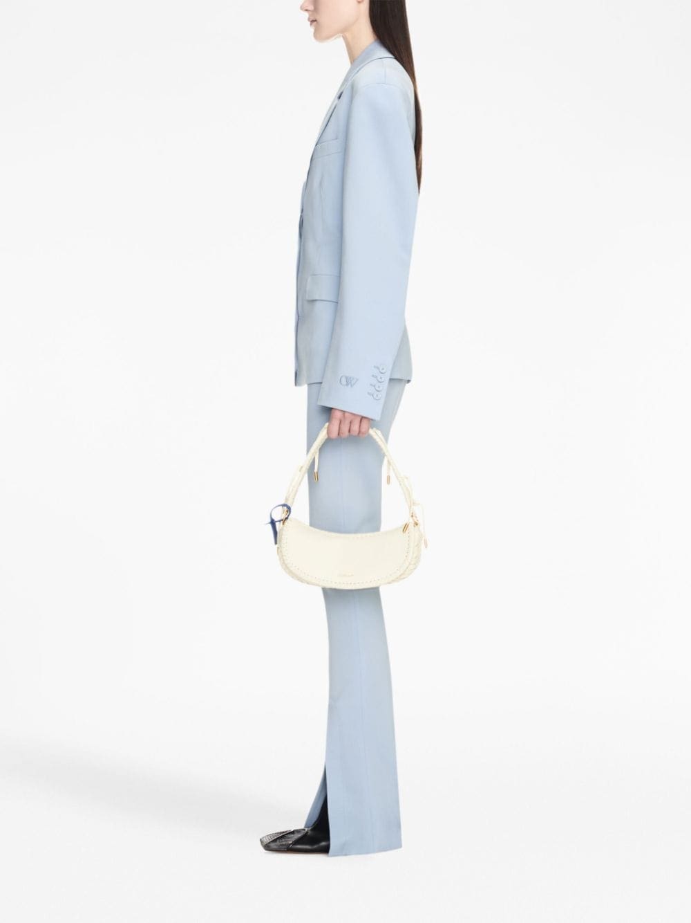 Off-White imprints its originality in this chevron-weaved leather shoulder bag. Its classic lines provide a timeless look, while the iconic Zip Tie tag showcases the brand's trademark streetwear appeal.Â