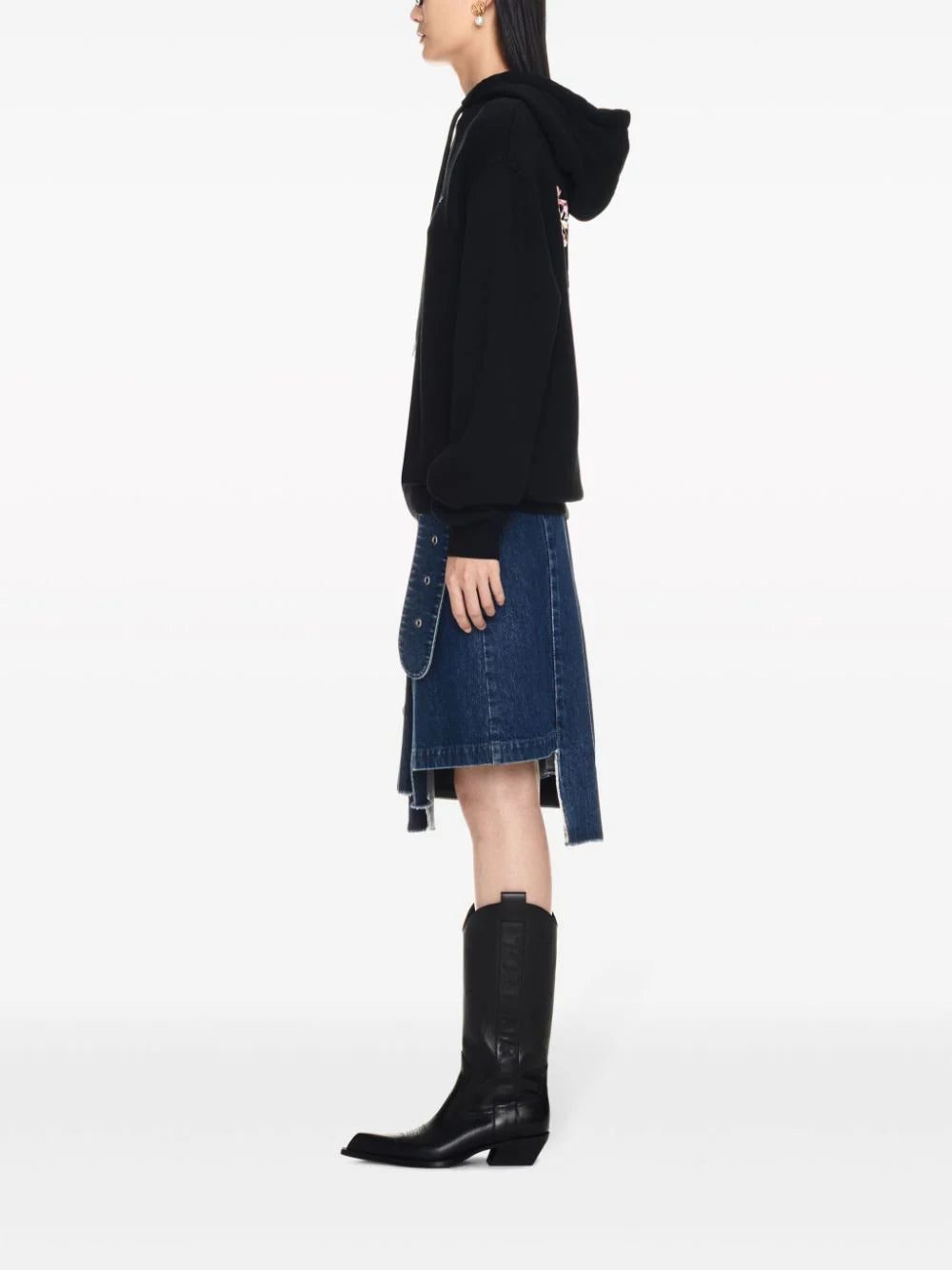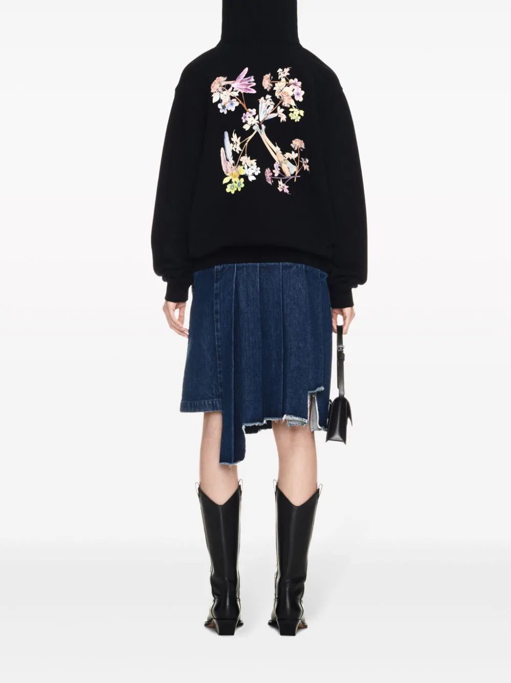 Off-White reinvents the iconic Arrows motif season after season. It's placed on the back of this black cotton hoodie and adorned with delicate flowers.