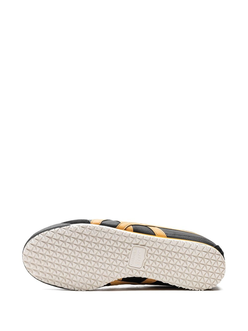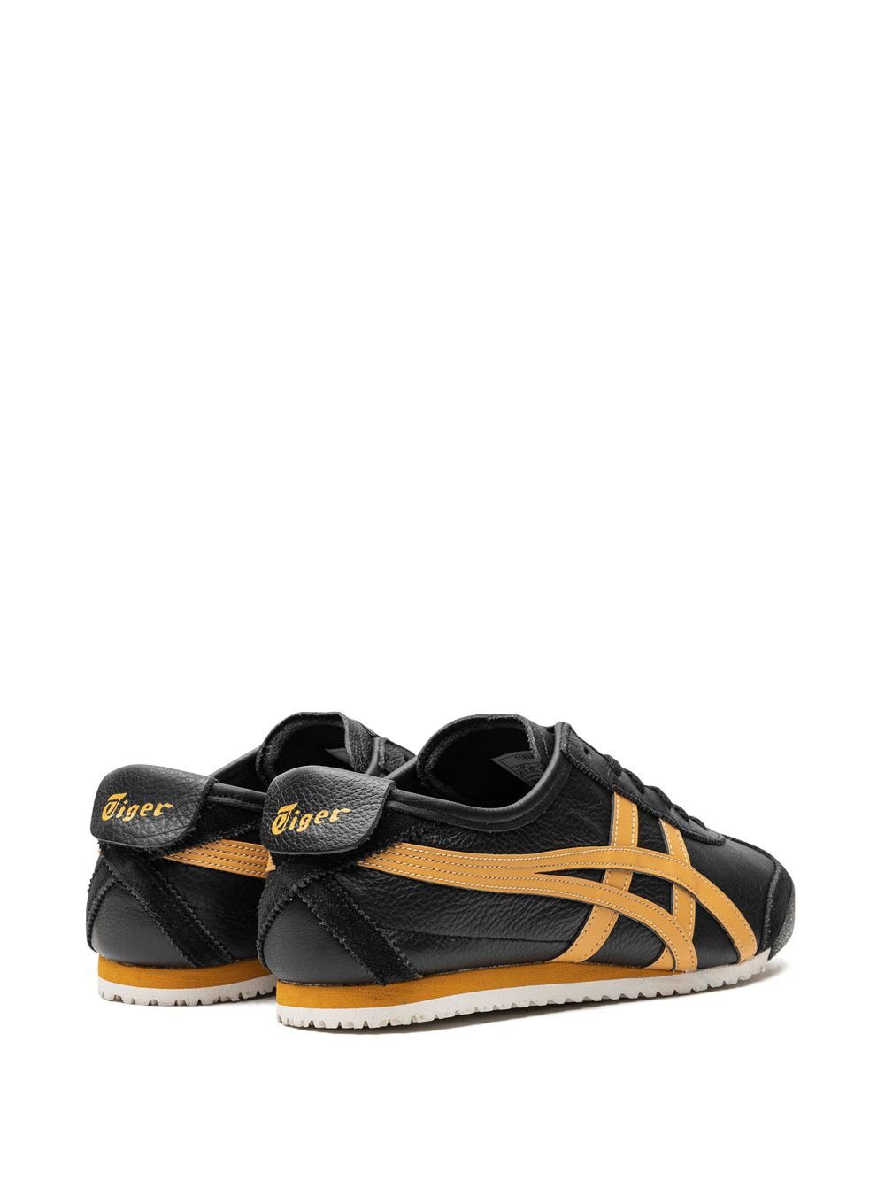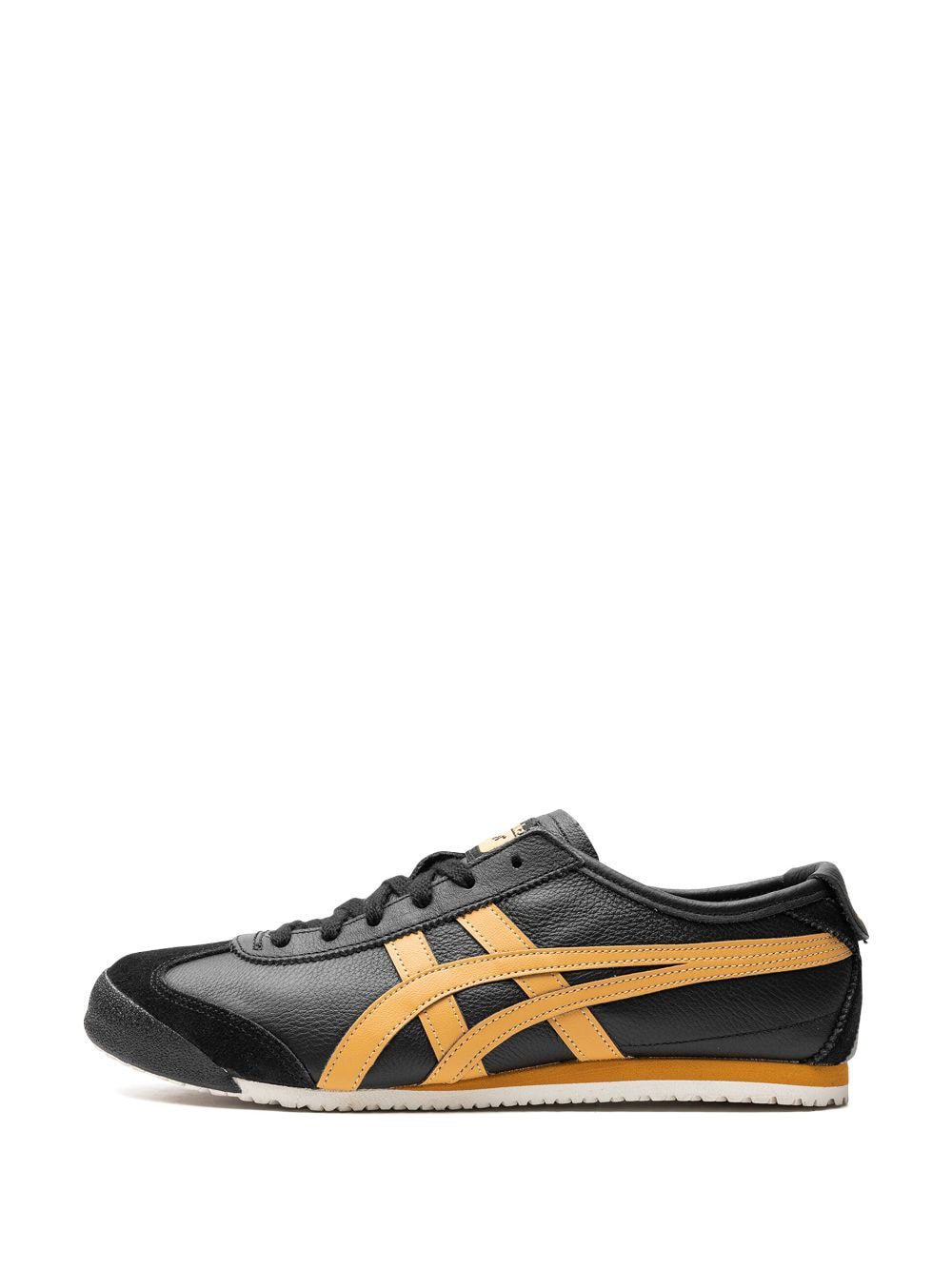 Onitsuka Tiger's Mexico 66 sneakers are crafted from black leather with the signature side stripe overlays in contrasting yellow. Underfoot, a rubber sole adds traction and comfort to the design.