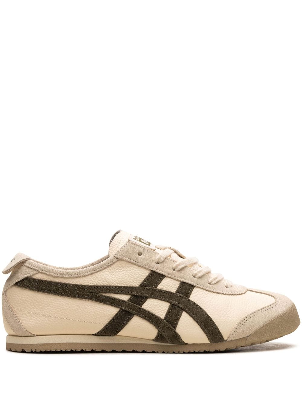 The Mexico 66 sneaker draws inspiration from a variety of classic training shoes - including the iconic LIMBER™, one of the very first shoes to feature the distinctive Onitsuka Tiger Stripes that was worn by the Japanese national team at the 1968 Mexico Games. This interaction boasts a timeless design in a cream-white and olive-green colourway.