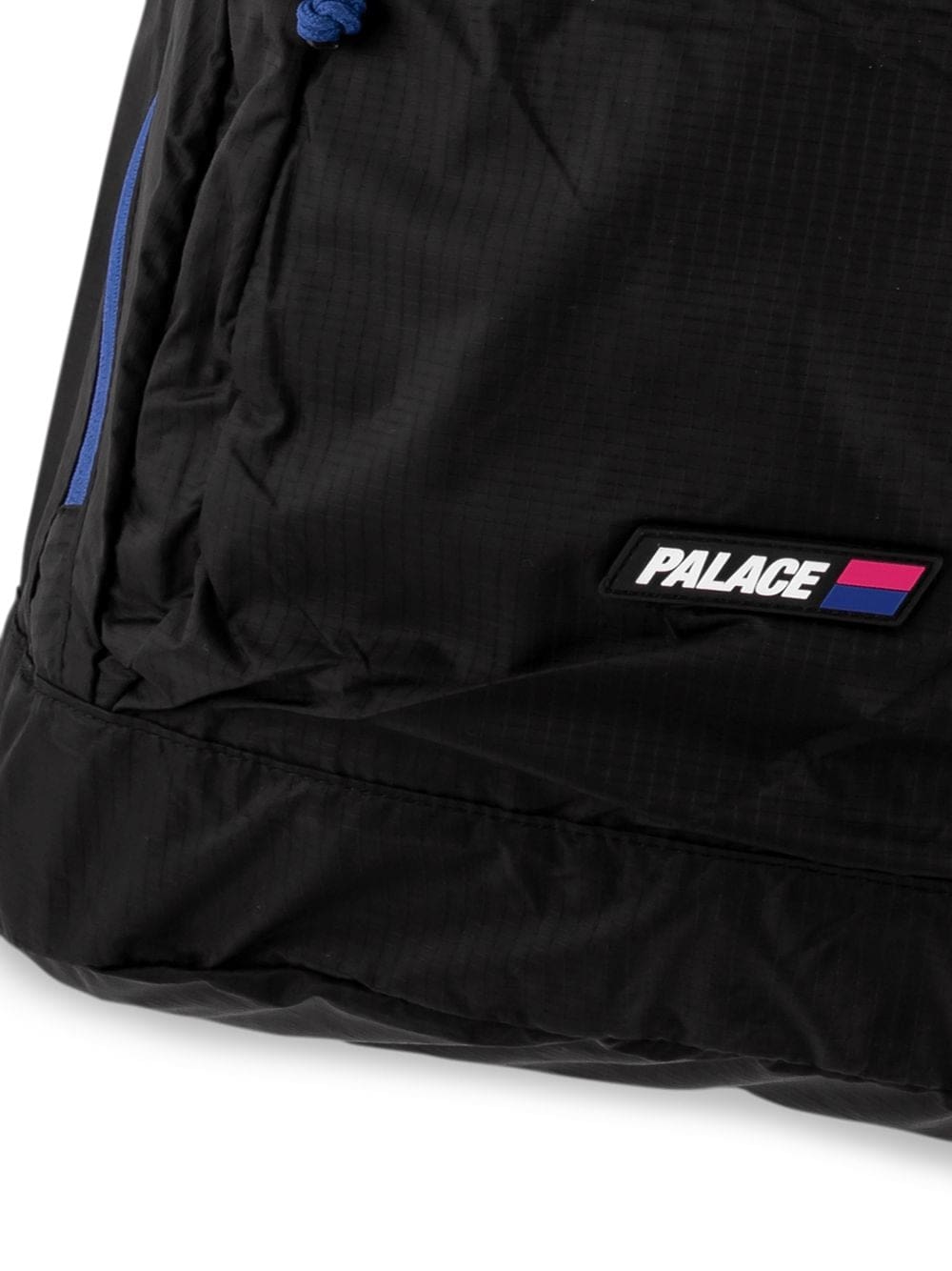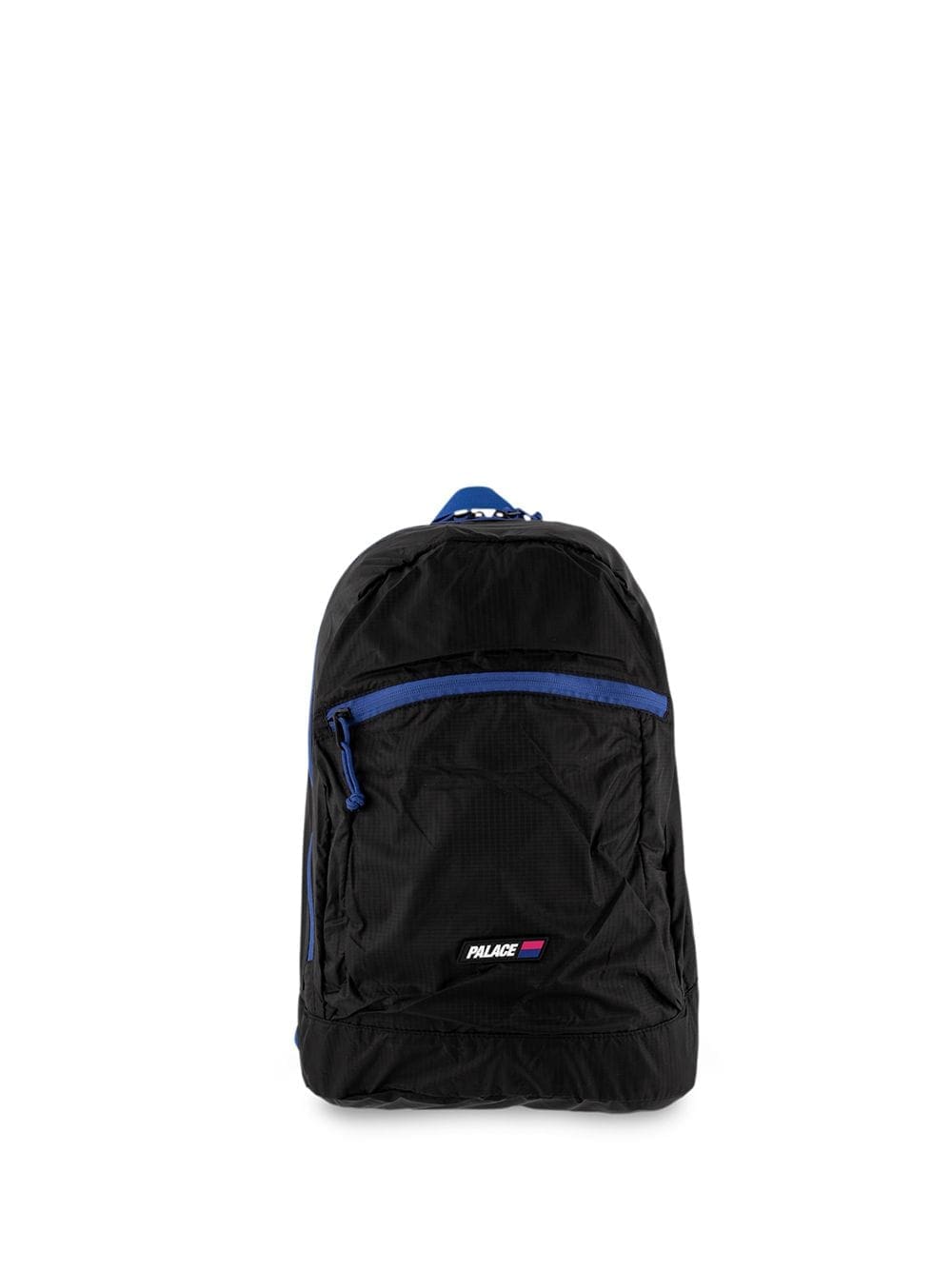 Black and blue logo detail backpack from Palace featuring a front logo patch, a top zip fastening, adjustable shoulder straps, a round top handle and a zipped front pocket. Supplied by a premier sneaker marketplace dealing with unworn, already sold out, in demand rarities. Each product is rigorously inspected by experienced experts guaranteeing authenticity..
