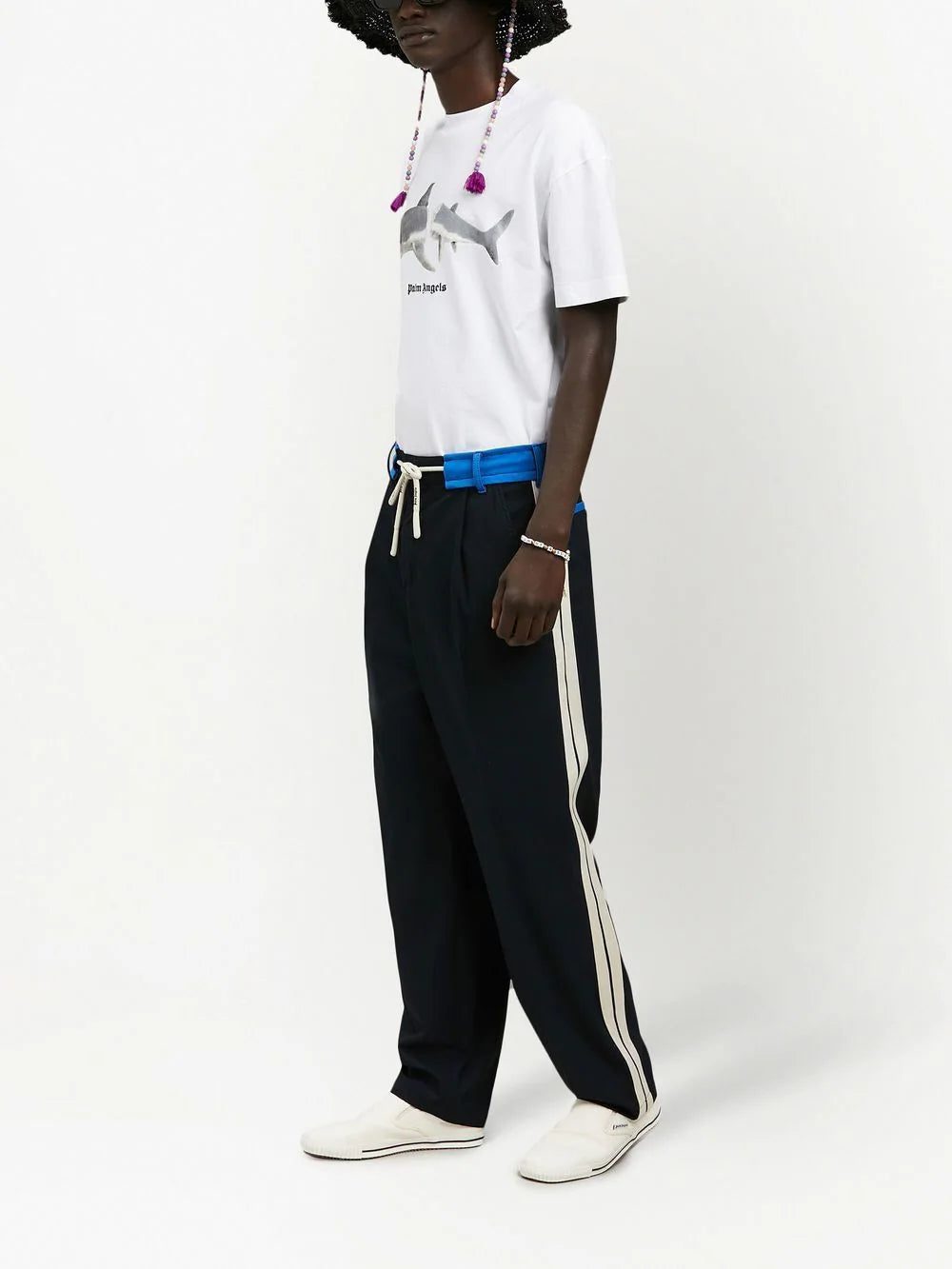 Palm Angels makes things practical with a streetwear edge. These track pants from the SS22 collection come crafted in a navy blue hue with a contrasting track stripe along the edge.