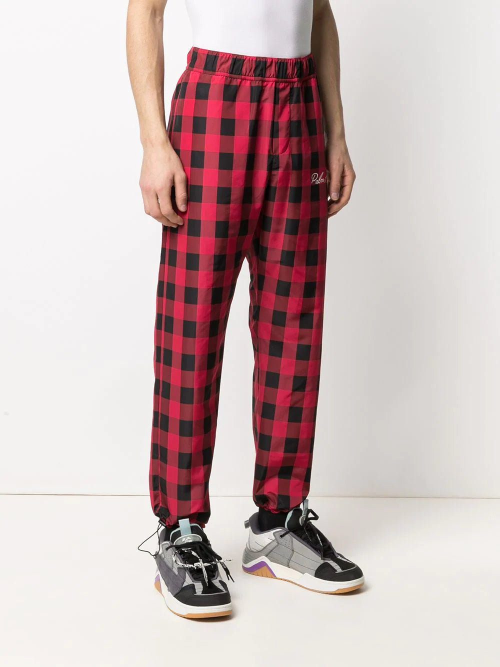 Be at the top of your game, always. These bold check print track pants from Palm Angels won't leave room for doubts. You're the winner.