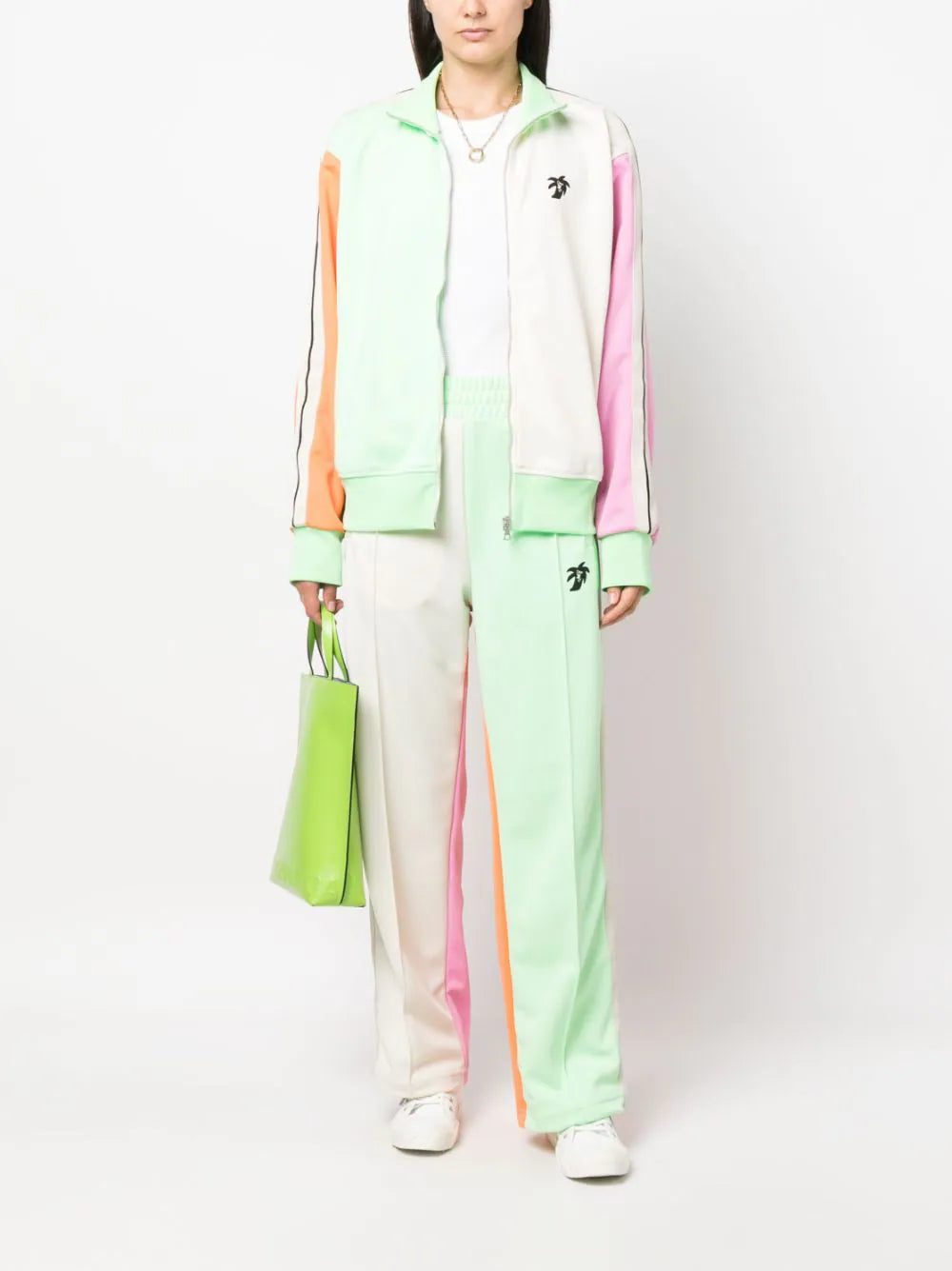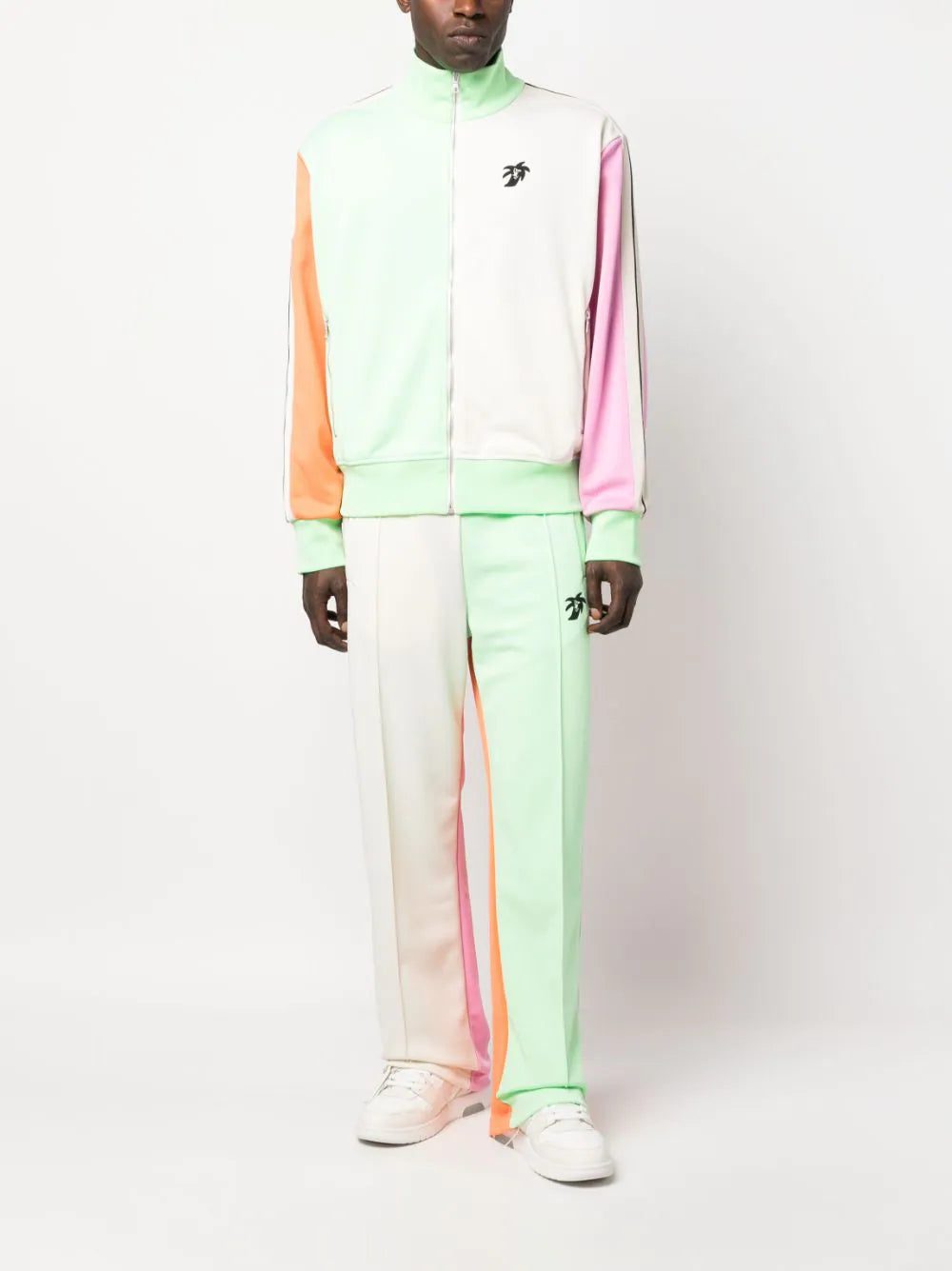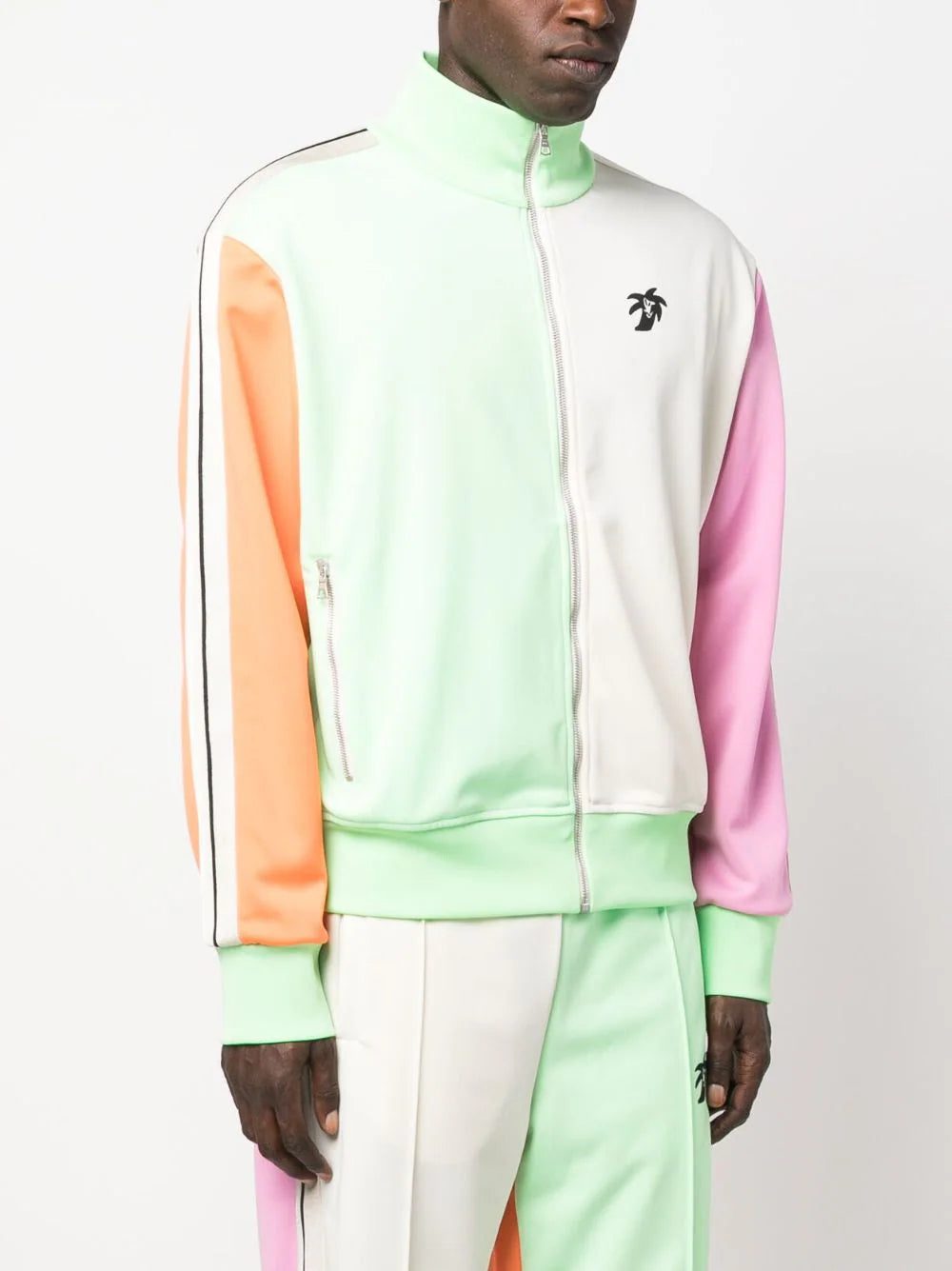 Catering to the brands' Californian aesthetic, this Palm Angels track jacket is constructed in a colourblock design, boasting bold contrasting hues and the signature logo palm tree print at the chest and back.