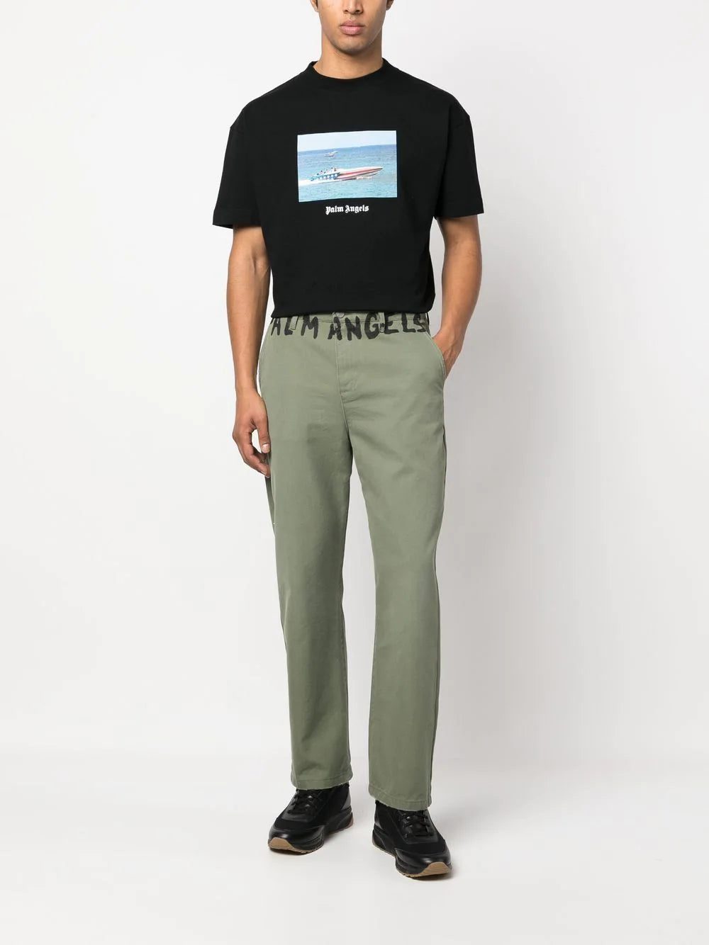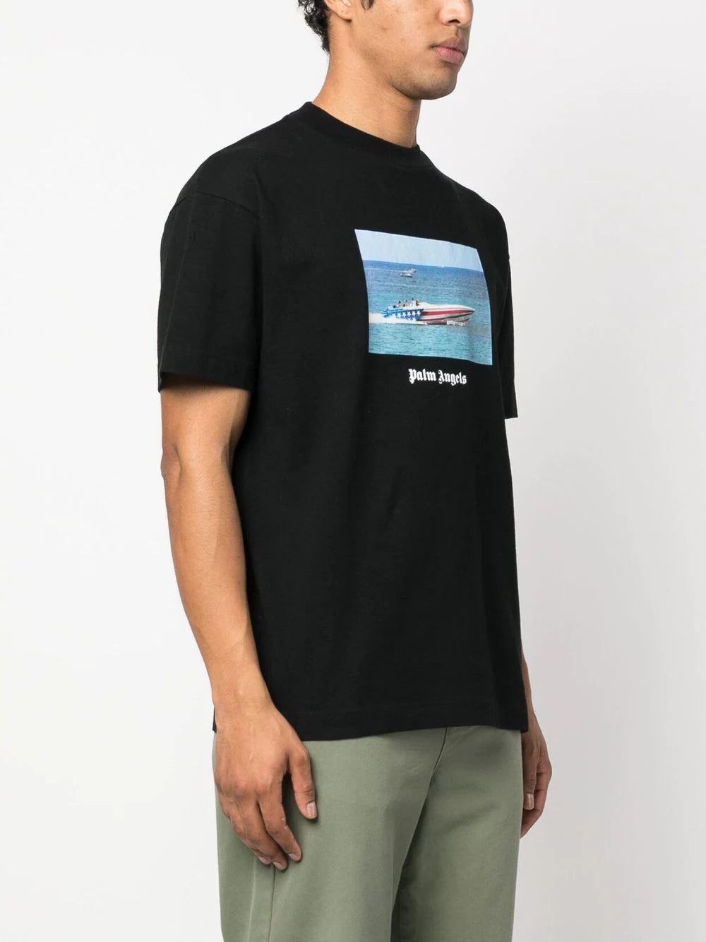 Palm Angels' penchant for bold design is showcased with this cotton-spun T-shirt, adorned with a Getty Speedboat photograph print to the front. The garment is complete with the signature logo print for a recognisable look.