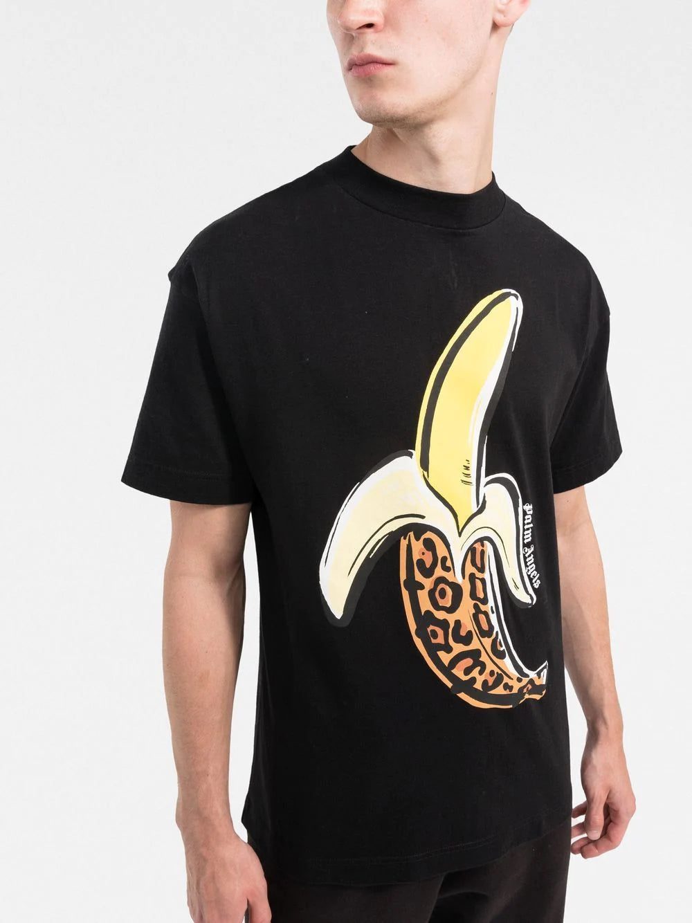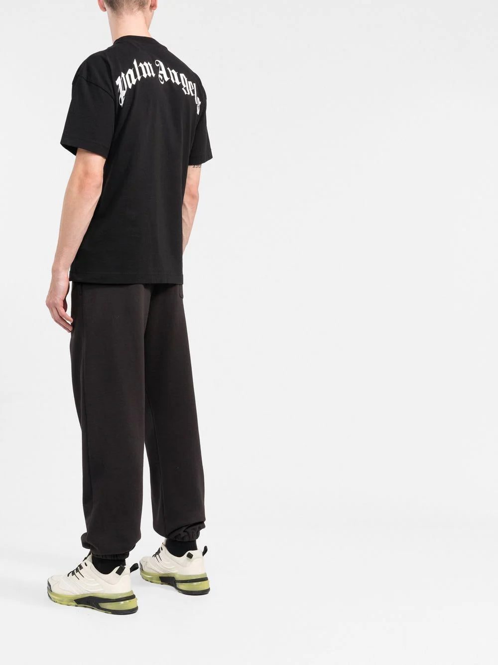 graphic-print cotton T-shirt from PALM ANGELS featuring black/multicolour, cotton, graphic print at the chest, logo print to the front, round neck, short sleeves and straight hem.