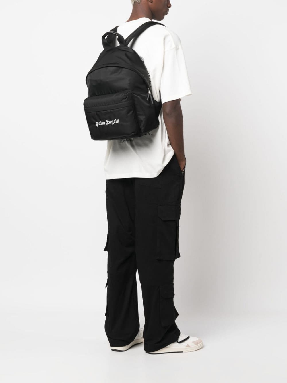 Practical design with a signature touch, this Palm Angels backpack boasts ample storage with its main compartment and front pouch pocket, while contrasting logo embroidery in gothic lettering lends a branded finish.