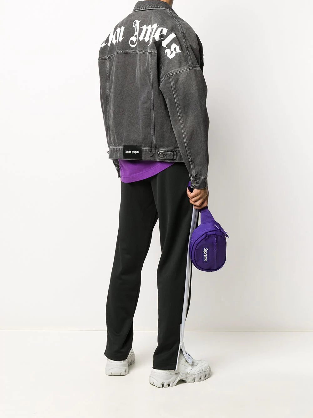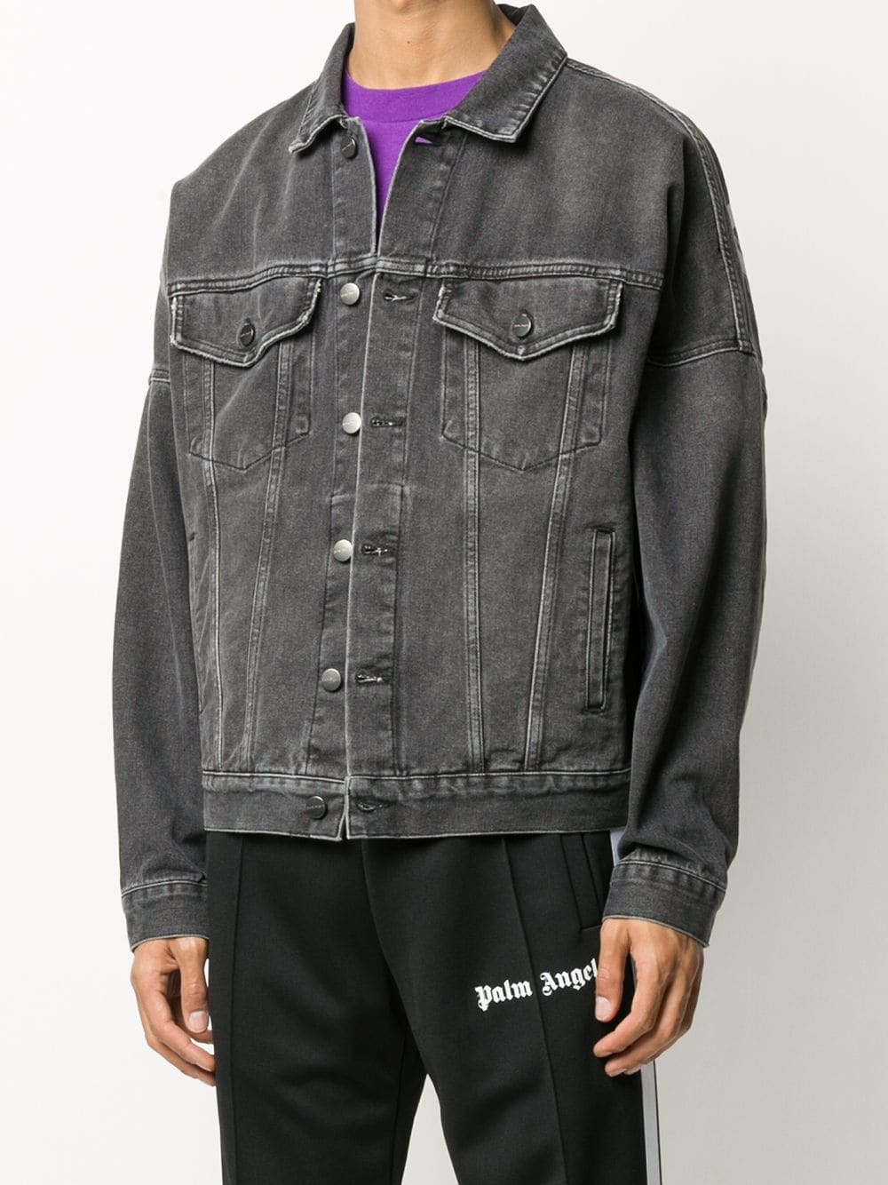 Palm Angels logo over denim jacket