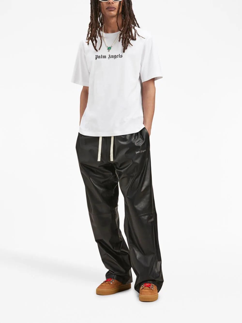 Inspired by the Los Angeles skateboard scene and the founder's Italian heritage, Palm Angels creates refined pieces with streetwear influences. Seen on this short-sleeve T-shirt, the garment features a logo print at the chest in a contrasting colourway which ties in with current branding trends.