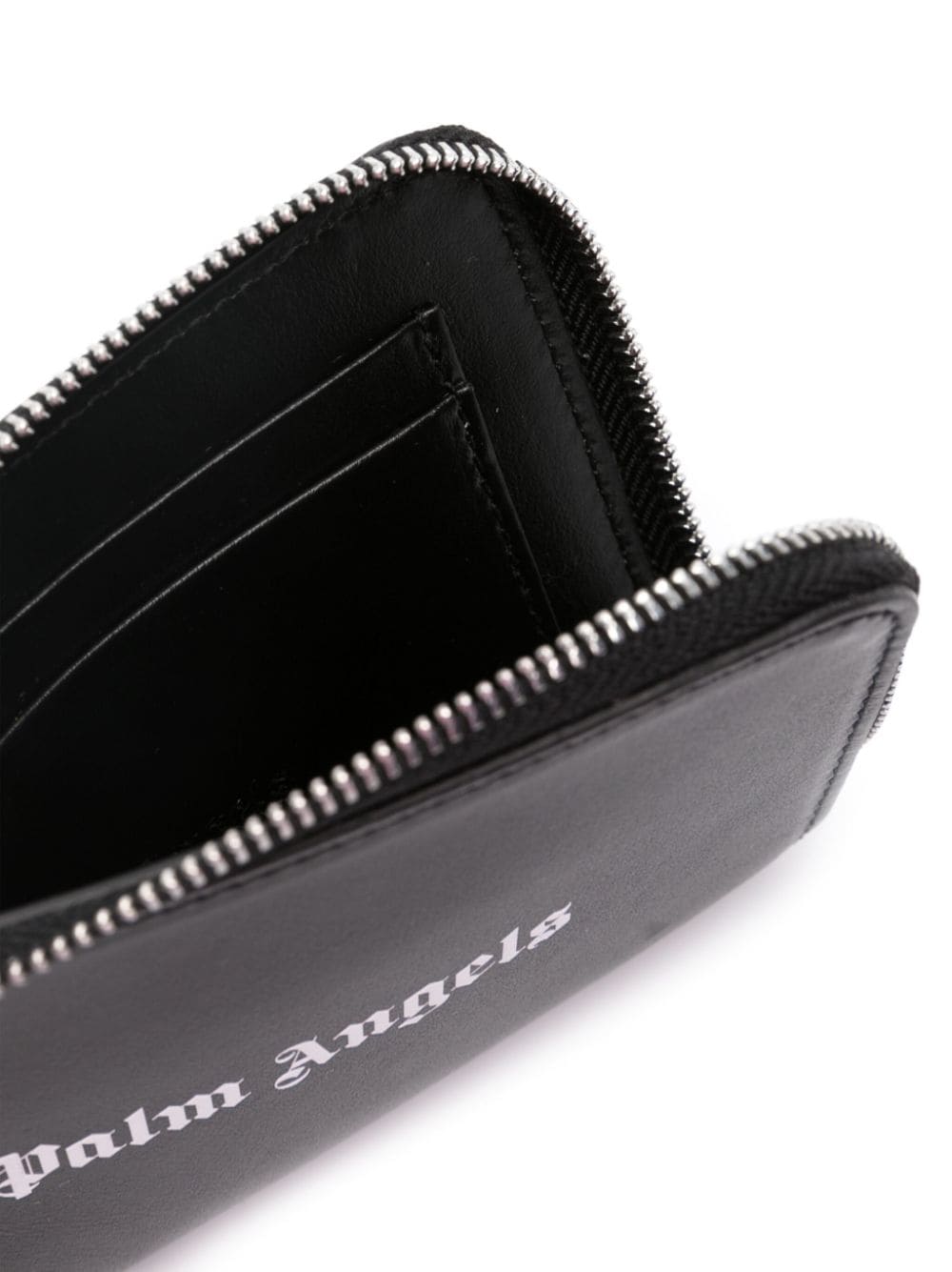 This cardholder from Palm angels is made from smooth black leather and stamped with contrasting logo lettering at the front. It secures with a silver-tone zip and is equipped with multiple internal slots.