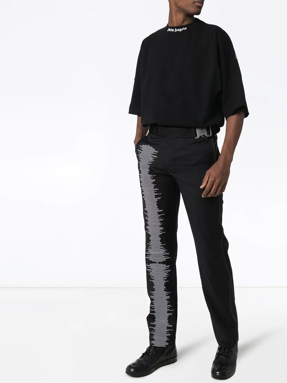 Does it get any better than the humble T-shirt? Yes. This black cotton logo print T-shirt from Palm Angels is elevated with printed logo detailing and an oversized fit. Time for an upgrade. Featuring dropped shoulders, half sleeves, a relaxed shape, a printed logo to the rear and a round neck with a contrast printed logo.