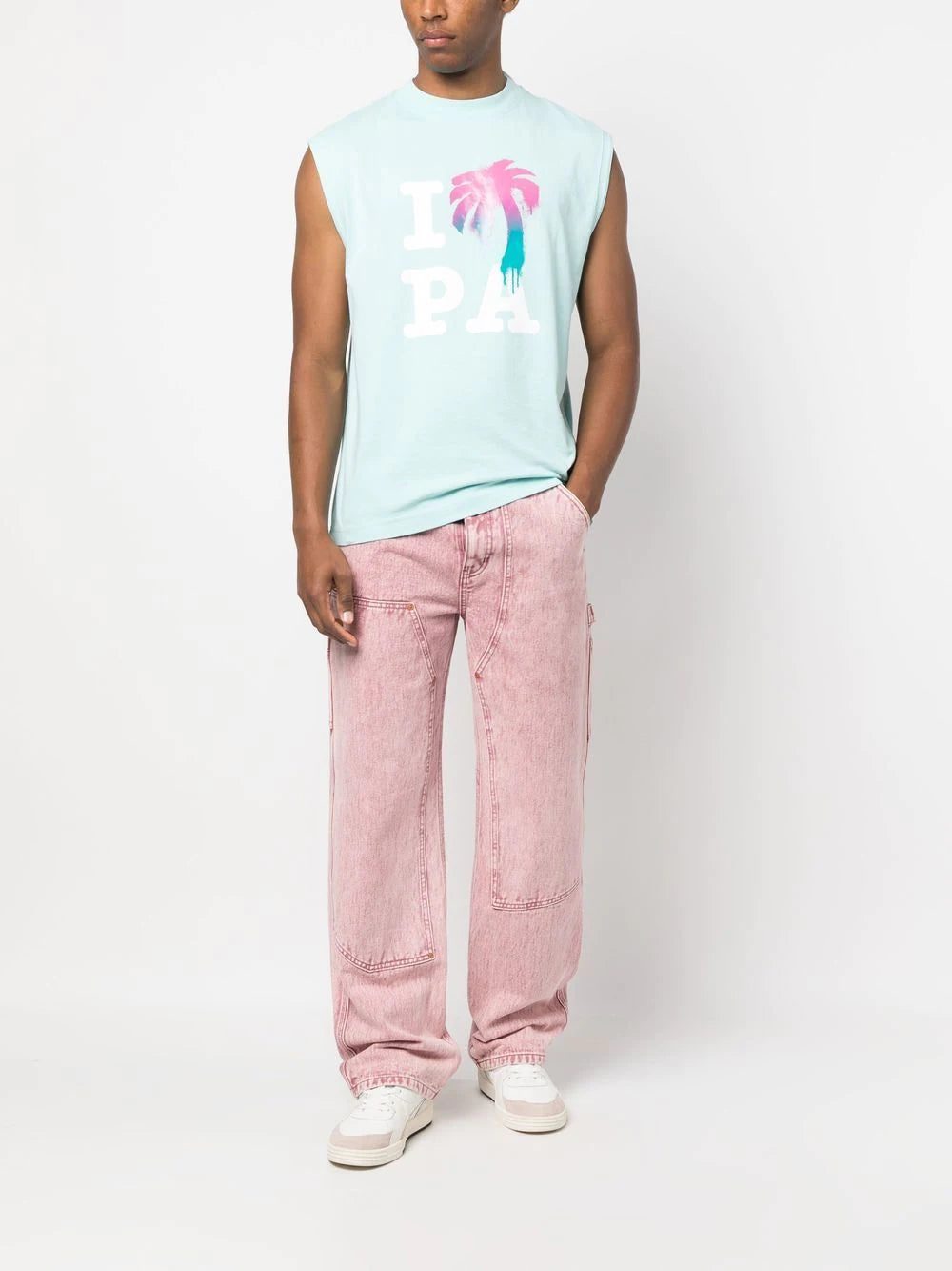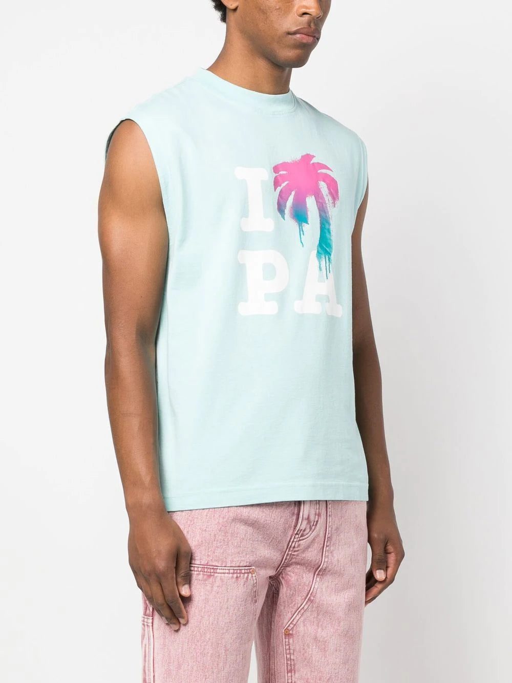 This crew neck top from Palm Angels boasts a logo-print design to the front, elevated by the familiar palm tree print. Meanwhile, a sleeveless silhouette gives this piece a casual feel.