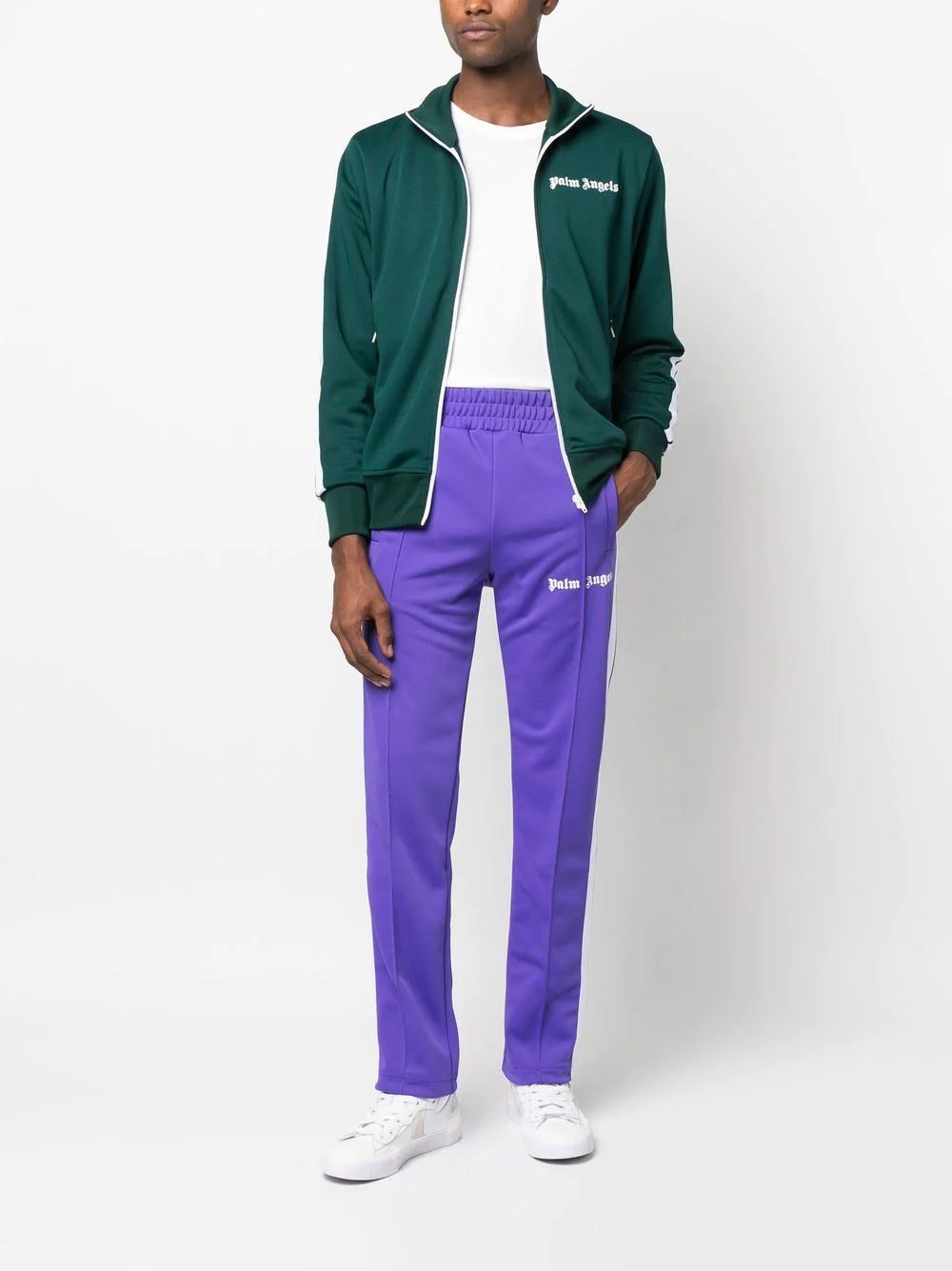 Inspired by sporty streetwear, Palm Angels presents these vivid purple track pants in a casual silhouette. Complete with their branding printed to the side, the pair are punctuated by the side stripe detailing, adding to the athletic aesthetic.