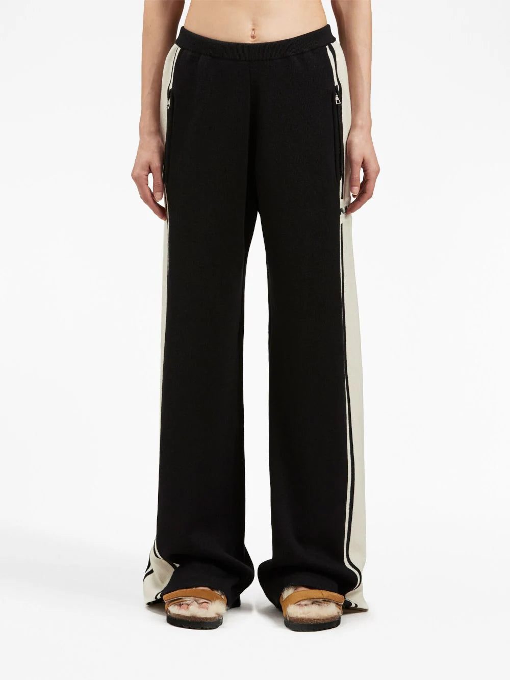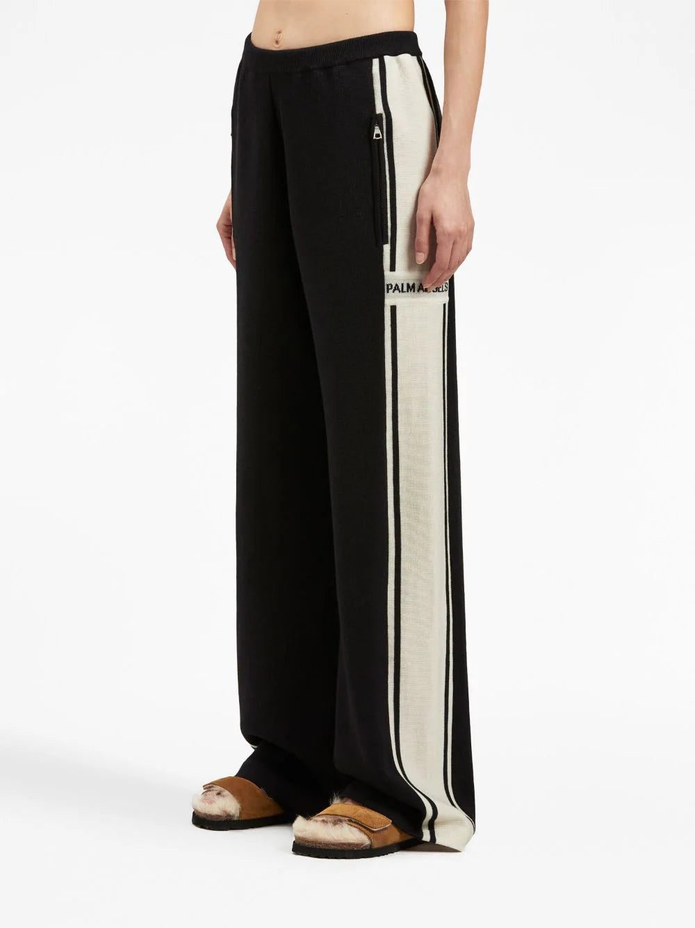 Italian brand PALM ANGELS decorates these knitted track pants with a contrasting side stripe. The brand's logo appears on the side of the leg for a distinctive branding note.