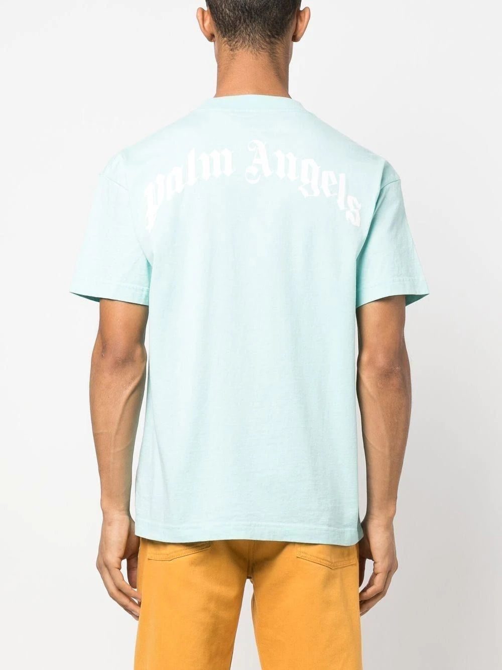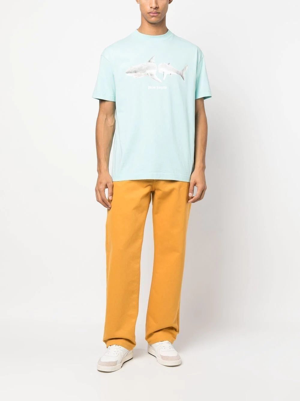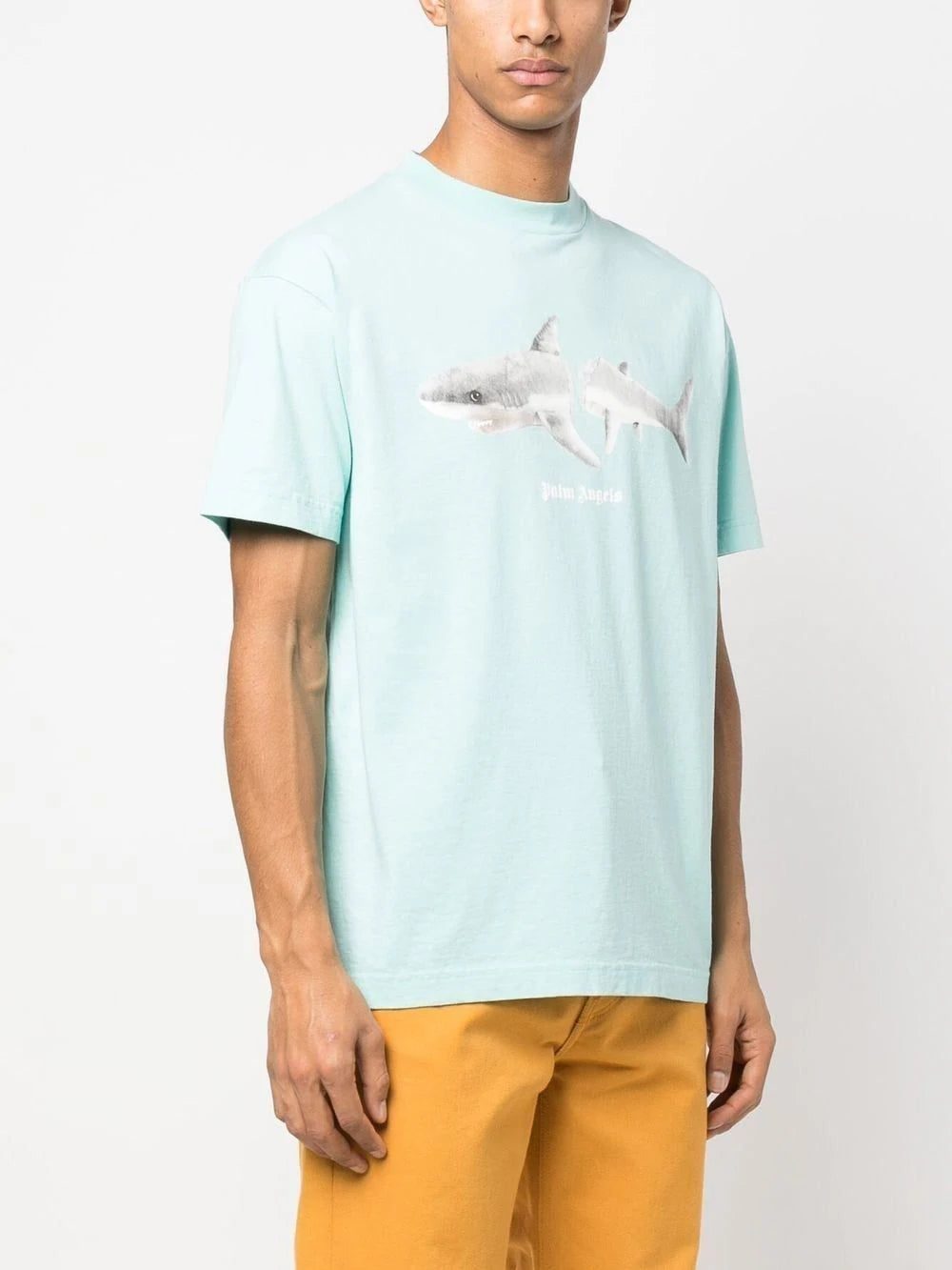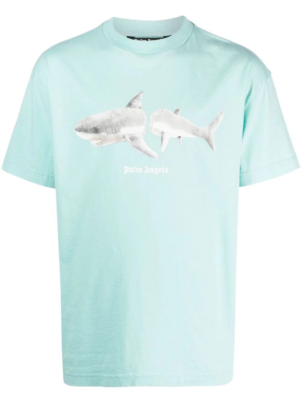 The coastal city of Los Angeles is a great source of inspiration for Palm Angels. For this blue cotton T-shirt, the brand goes oceanside with a shark-motif print on the front and logo lettering on the rear.