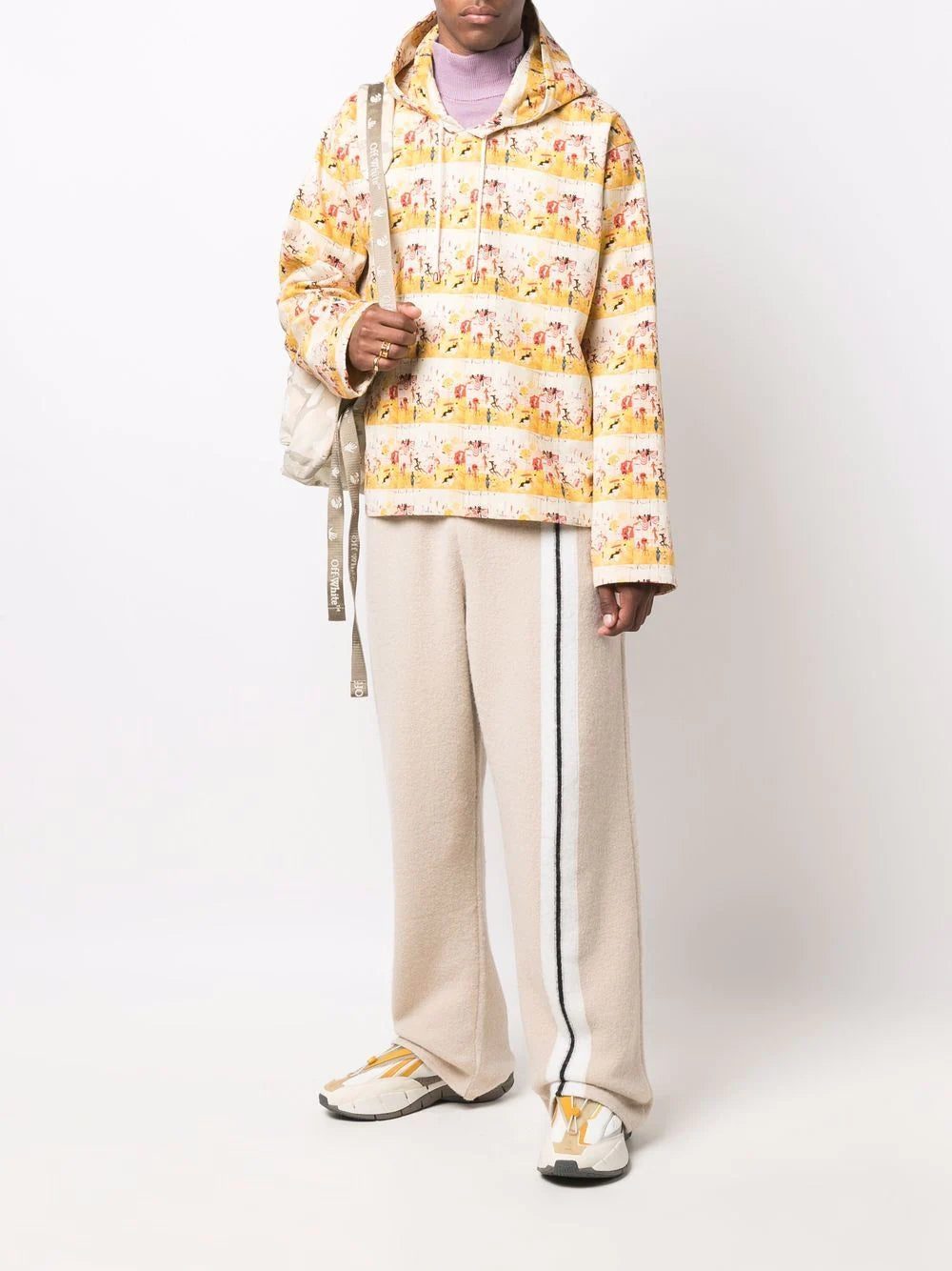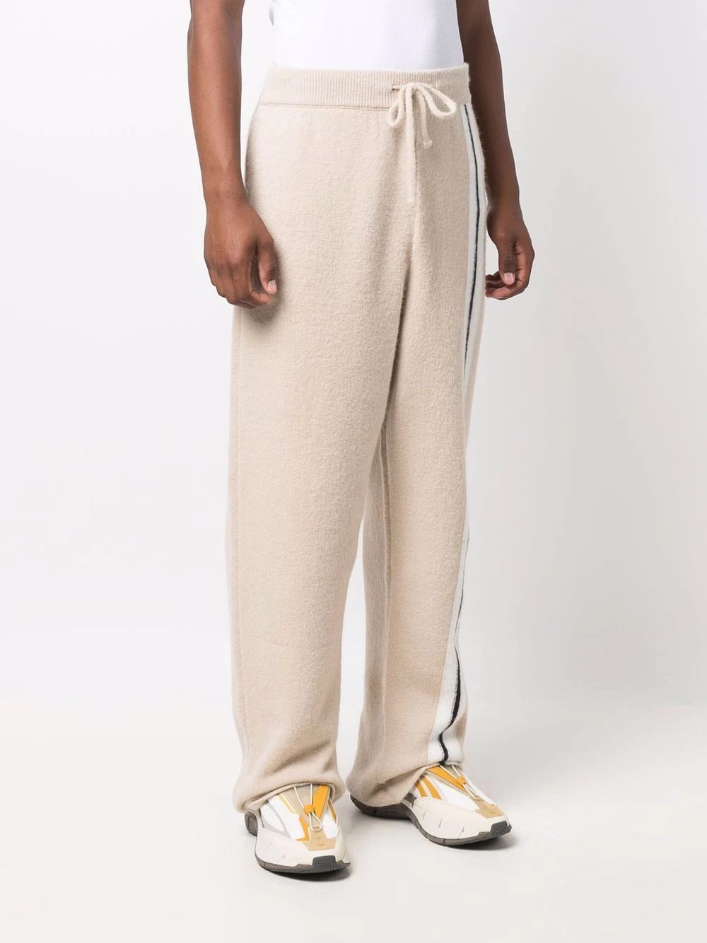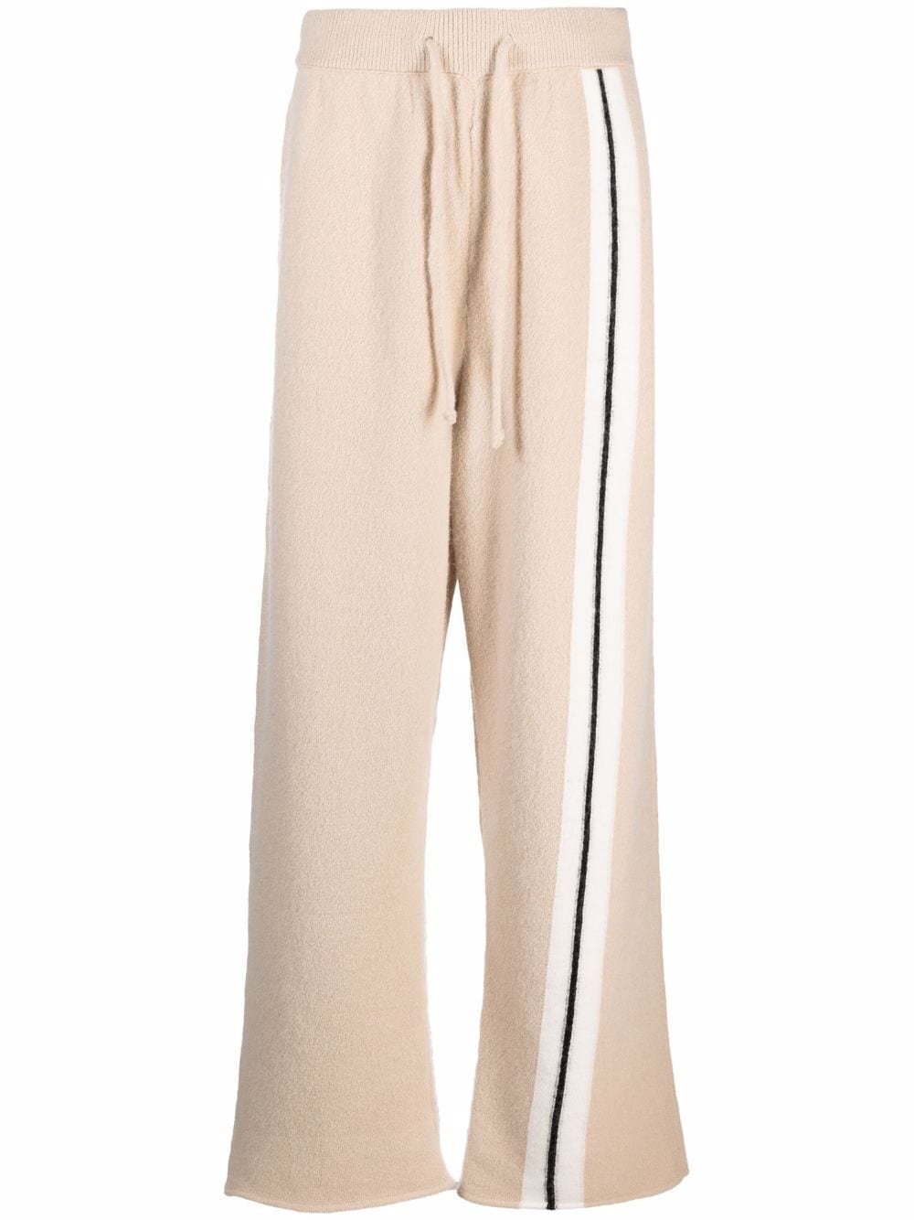 Inspired by American street culture, Palm Angels tells a story through its garments by making use of bright colours and special detailing. Like these beige wide-leg track pants decorated with side stripes.