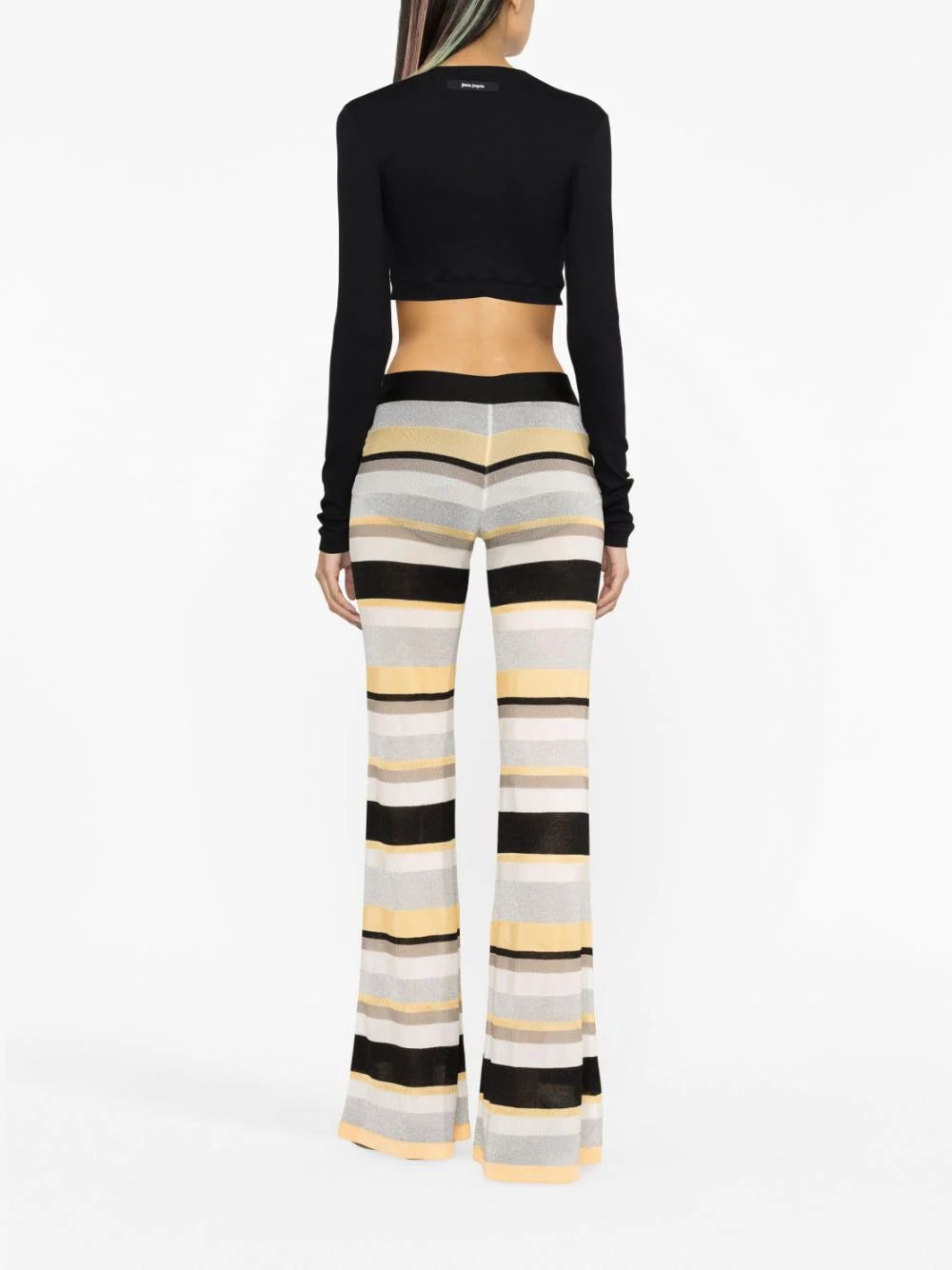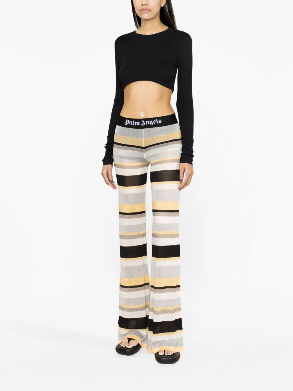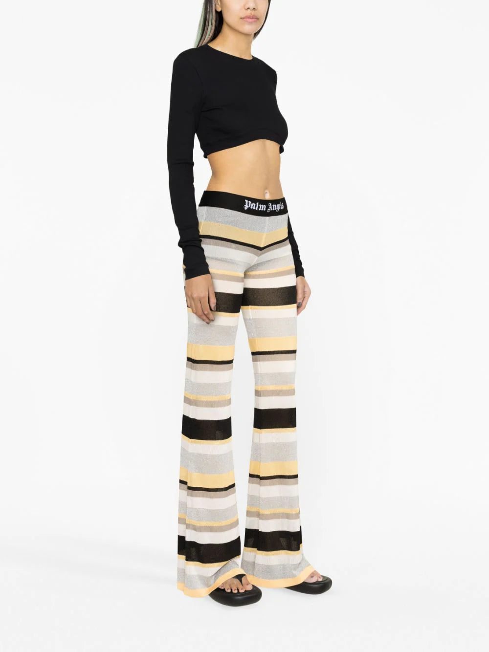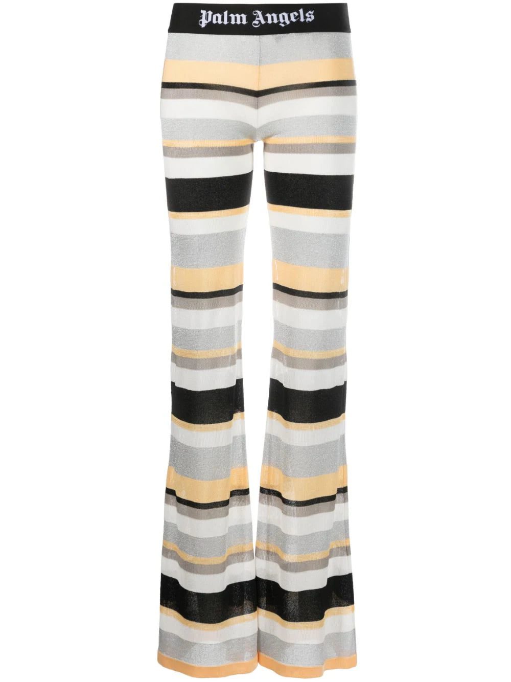A nod to 70s styling, these Palm Angels trousers boast a lightweight knit construction that falls to a flared silhouette. Bold stripes complement the pair's groovy appeal, enhanced by sparkling lurex detailing.