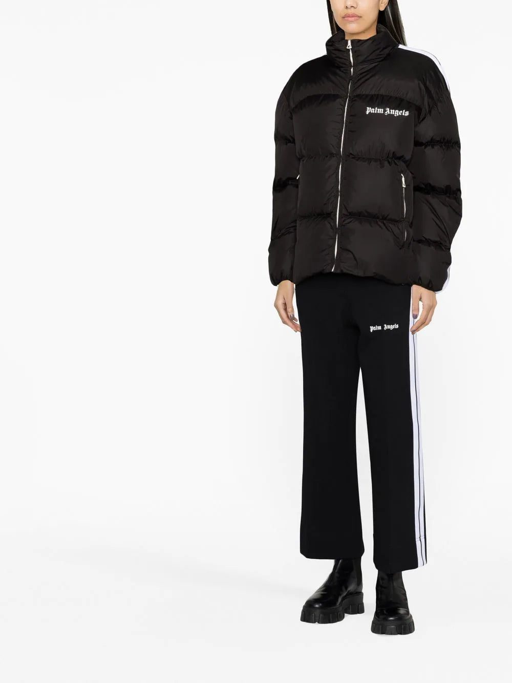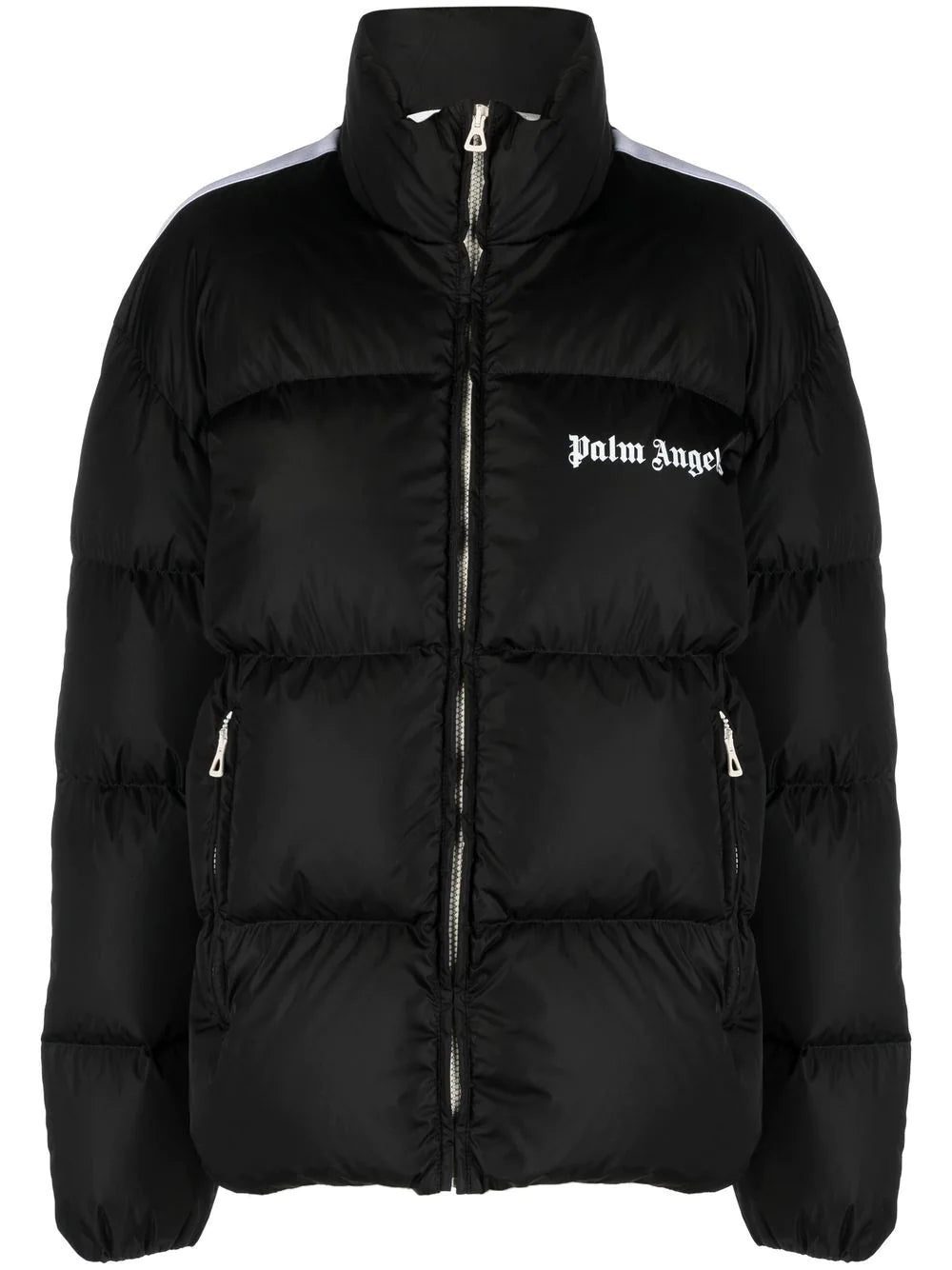 Palm Angels' puffer jacket riffs on vintage track styles worn on the West Coast. Padded with down for lightweight insulation, it's characterised by white contrast stripes down each sleeve - a mainstay of classic running styles.