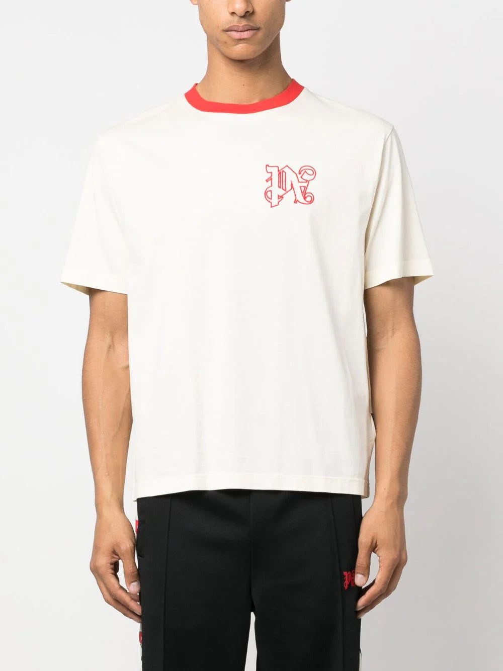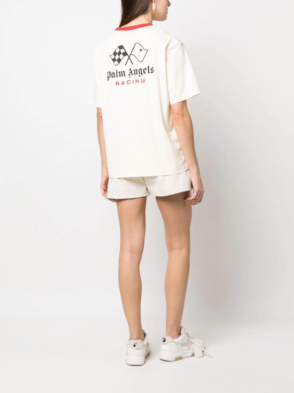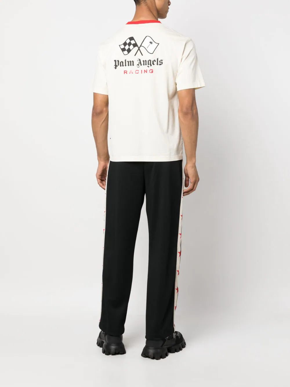 Palm Angels delves into the world of racing in its collaboration with the HAAS F1 Team. Introducing two collections; Palm Angels Racing and Palm Angels x HAAS F1 Team, the brands unite in their drive to succeed and contemporary aesthetic. Featuring a logo embroidery at the chest, this cotton T-shirt from the Palm Angels Racing line embraces the buzzing trackside atmosphere in its waving flag print to the rear.