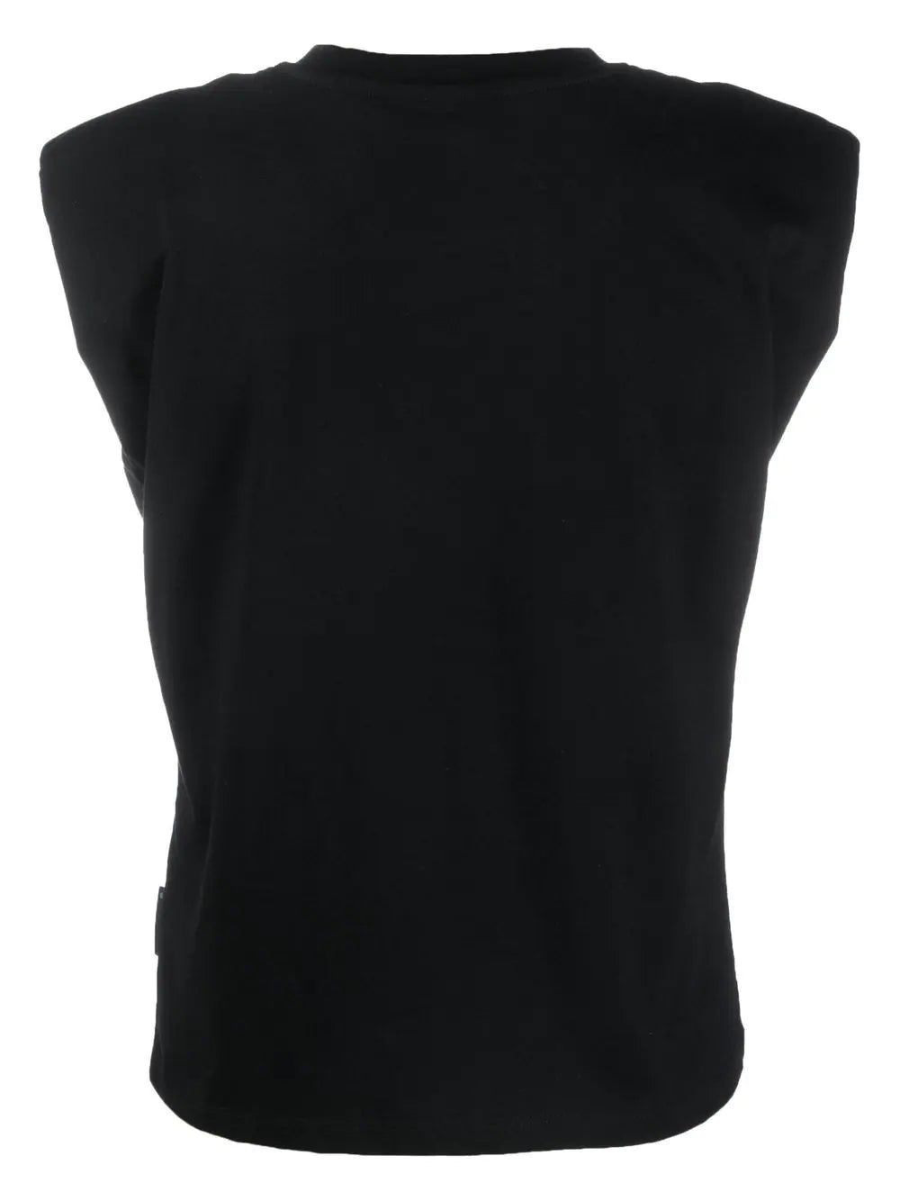 Aloha logo-print tank top from PHILIPP PLEIN featuring black, cotton, slogan print to the front, graphic print to the front, crystal embellishment, round neck, sleeveless and shoulder pads.