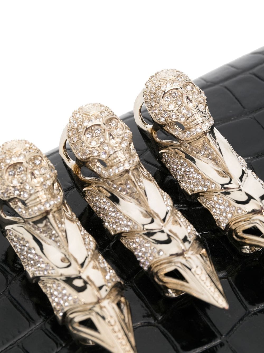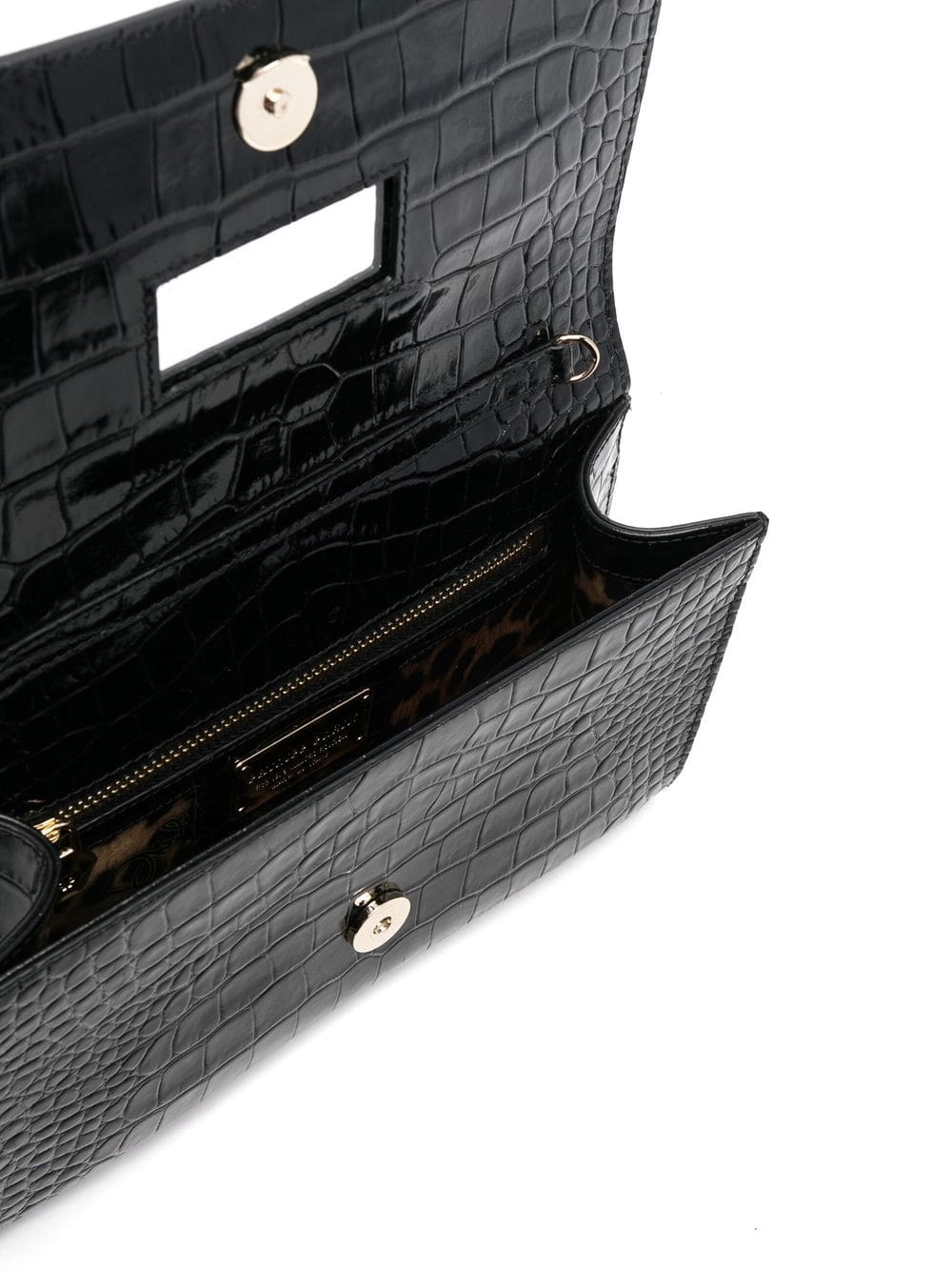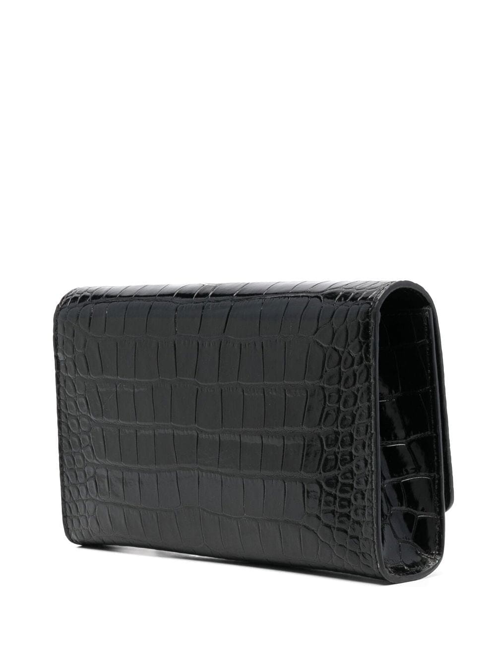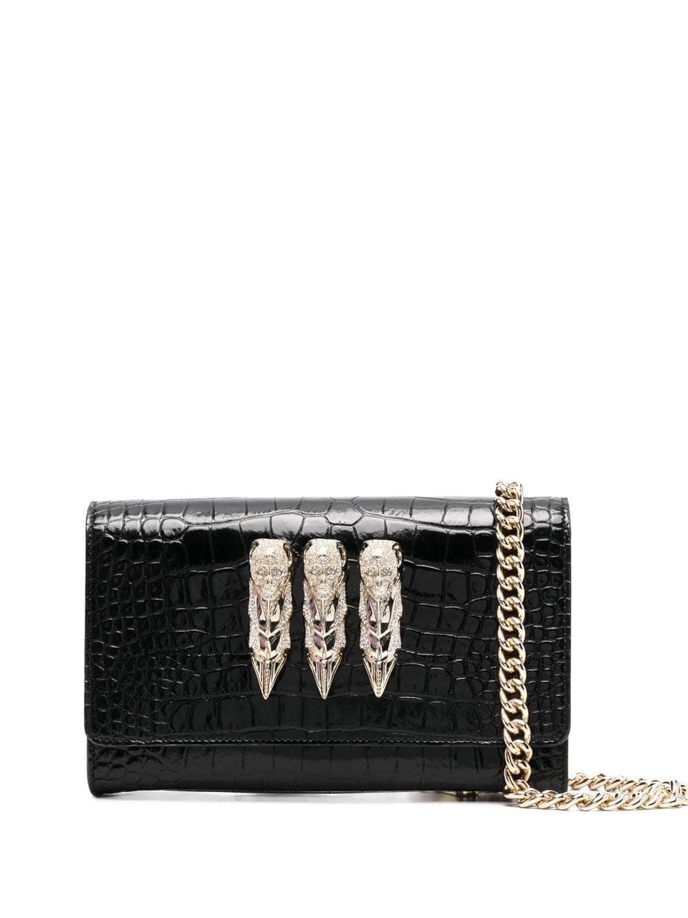 jet black charm detail skull charm embossed crocodile effect foldover top chain-link shoulder strap internal zip pocket
