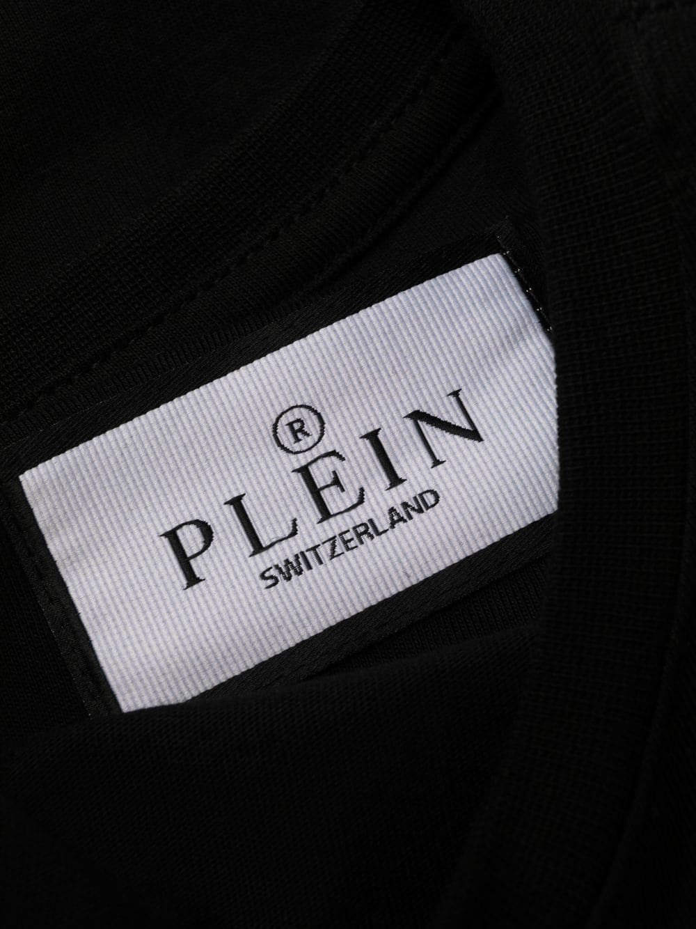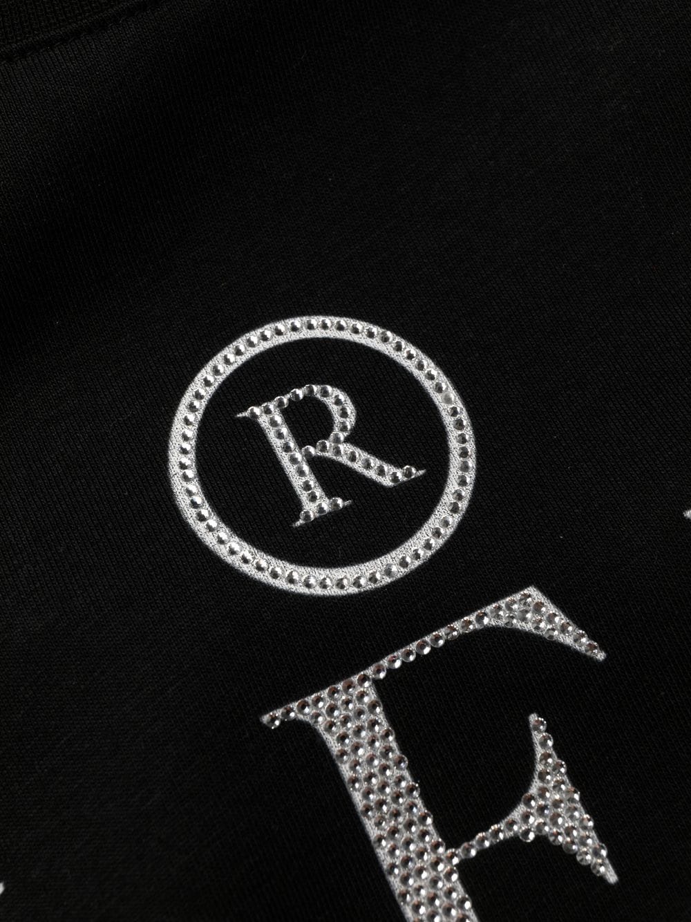black/white cotton crystal embellishment logo print to the front round neck straight hem