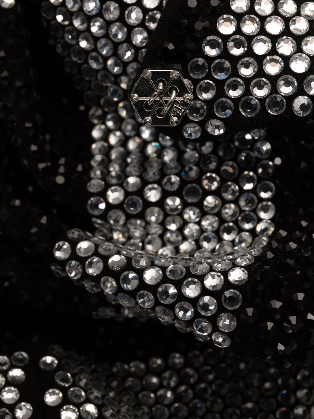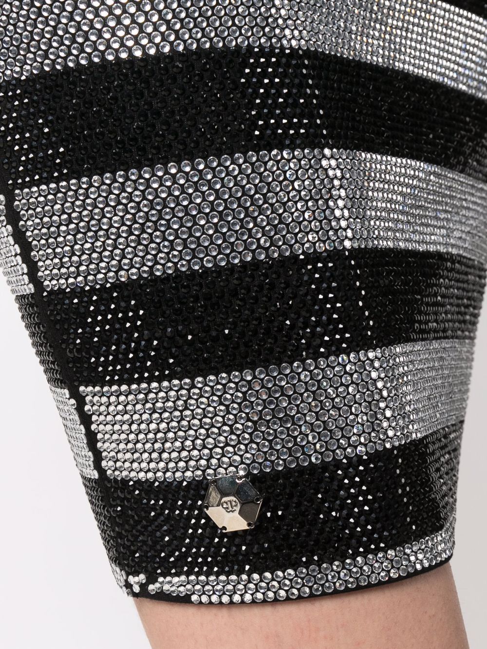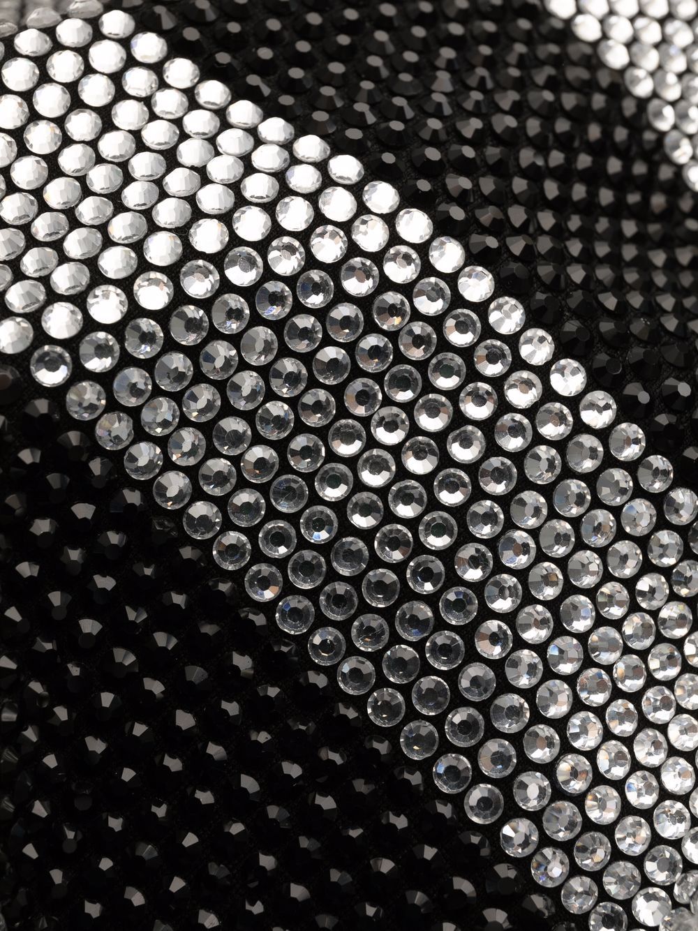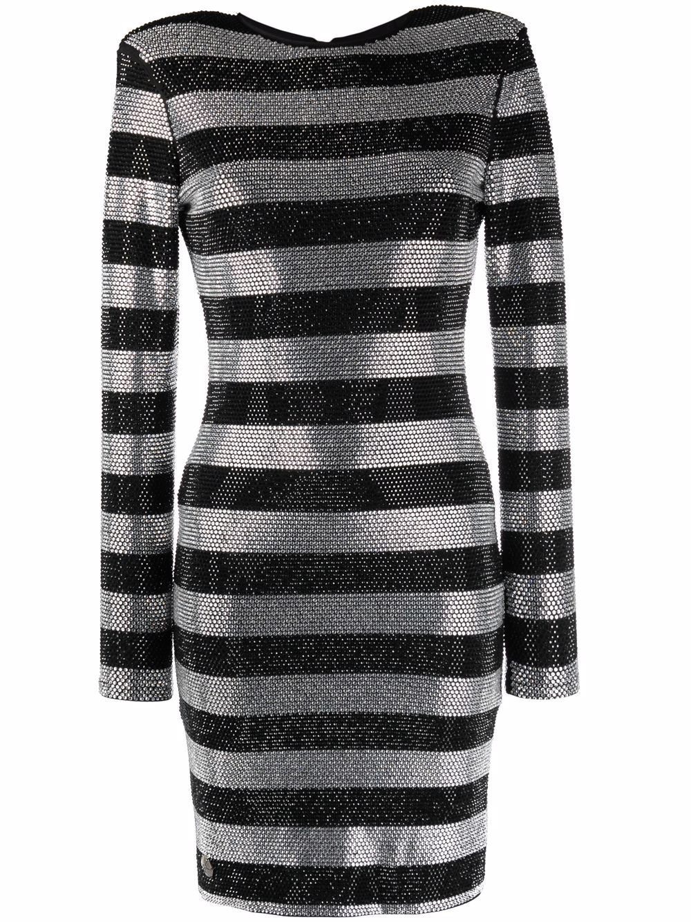 black/grey cotton crystal embellishment horizontal stripe pattern round neck long sleeves fitted waistline