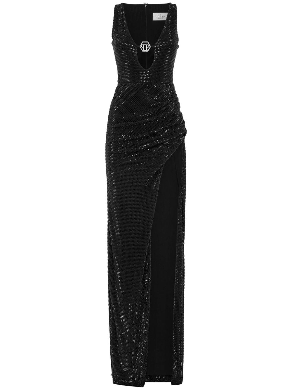 Philipp Plein metallic-threading front-slit maxi dress