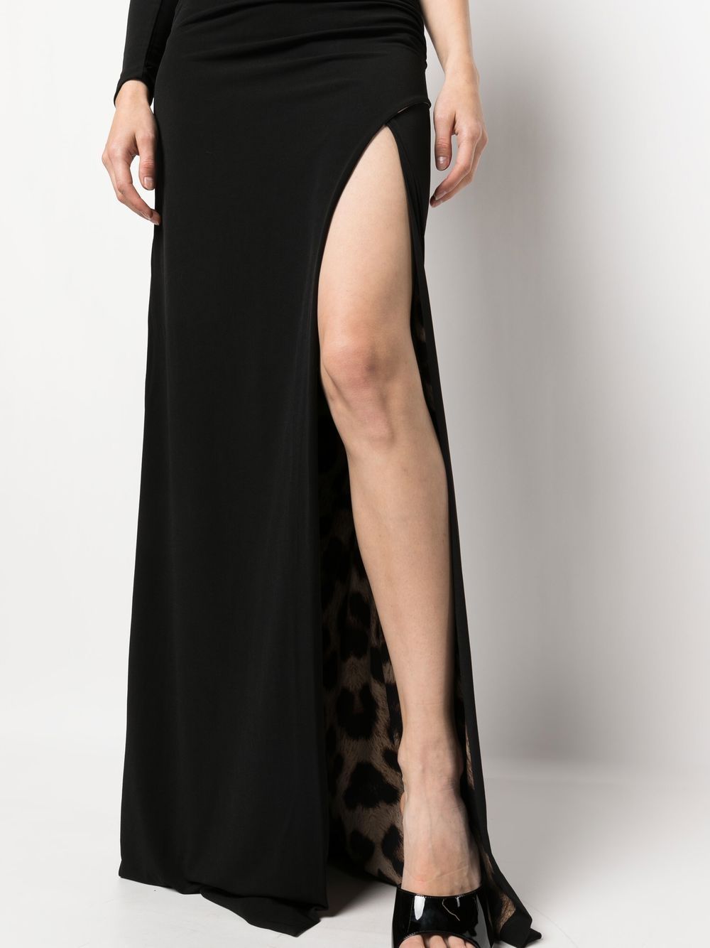 black flared off-shoulder cut-out detailing long sleeves front slit long length