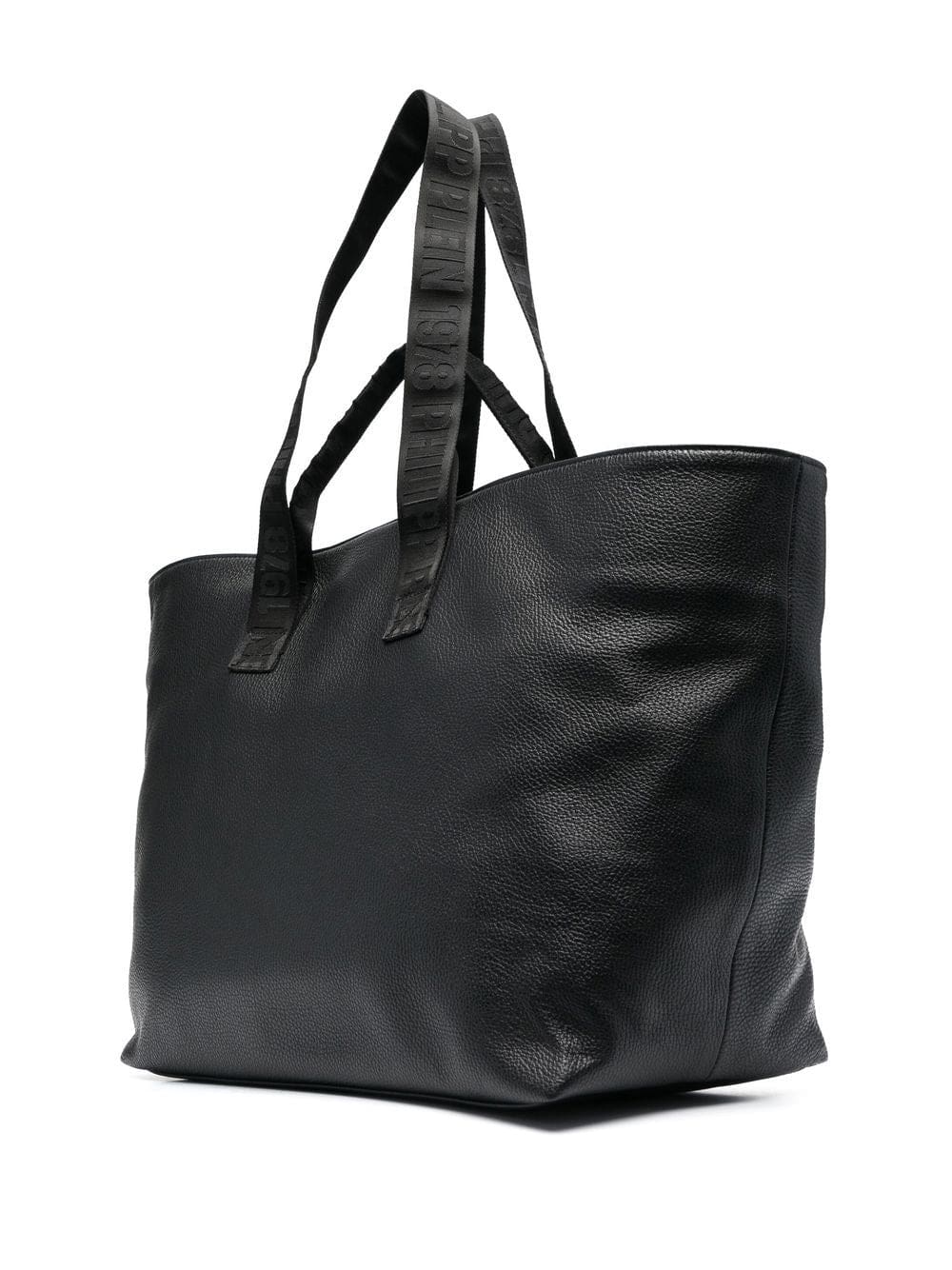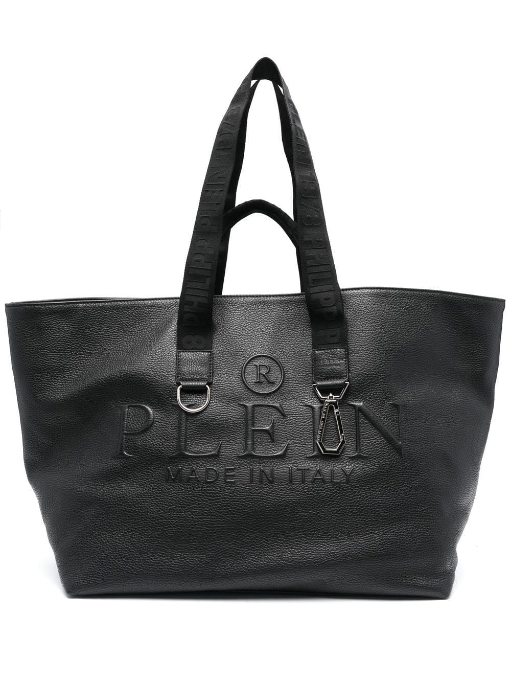 embossed-logo leather tote bag