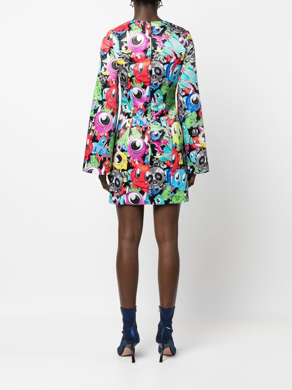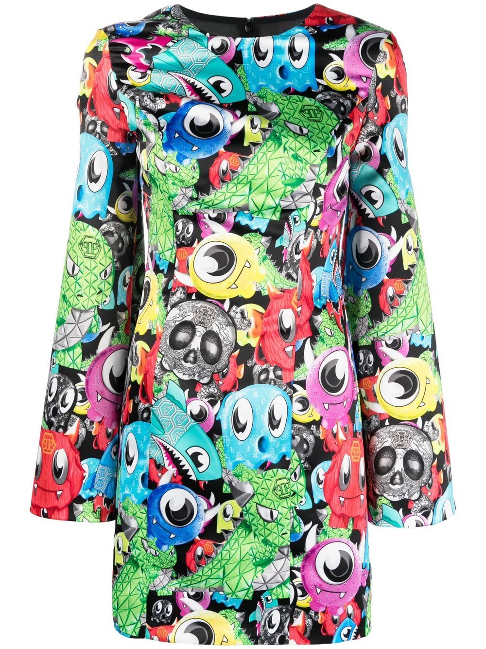 multicolour all-over graphic print round neck long wide sleeves shift style above-knee length straight hem